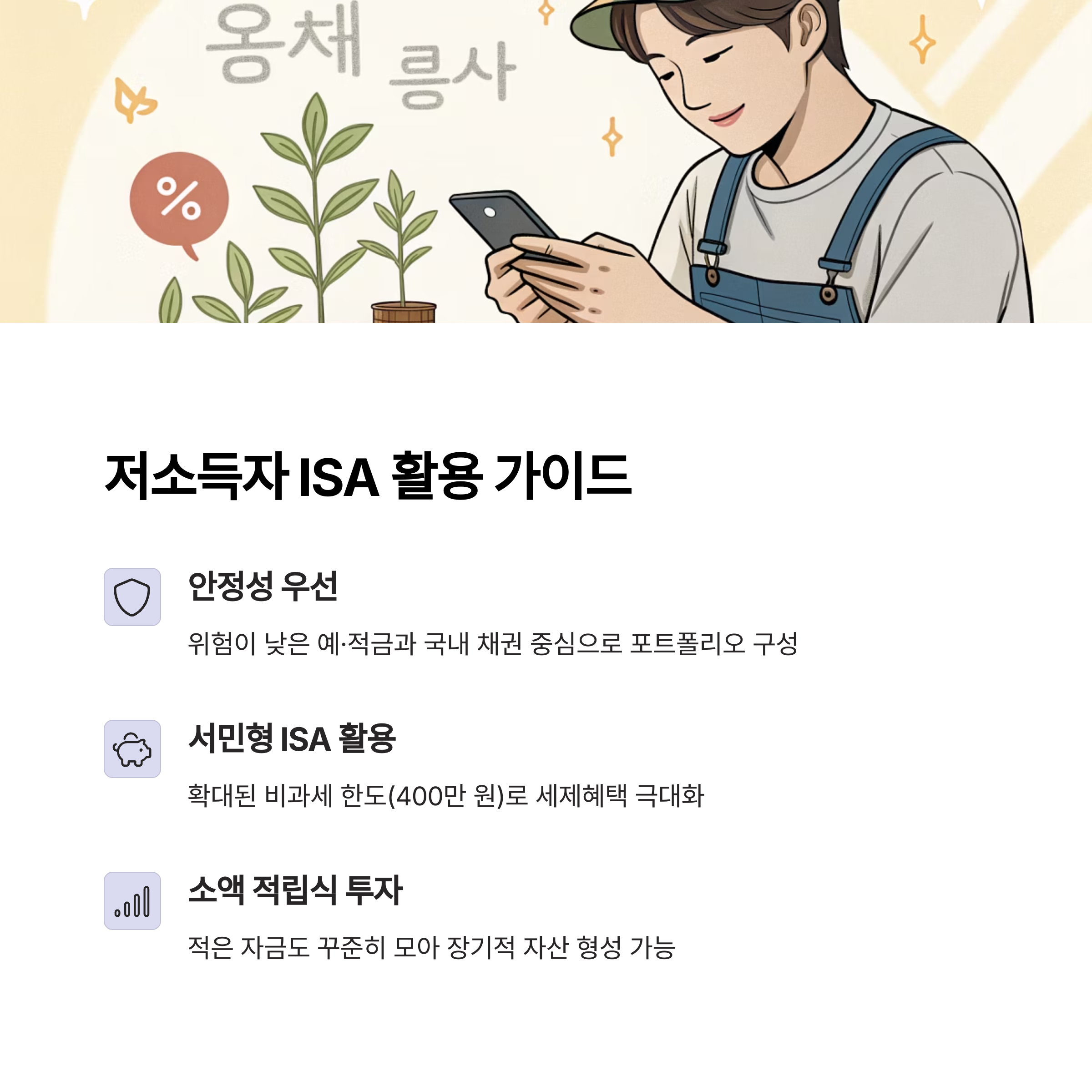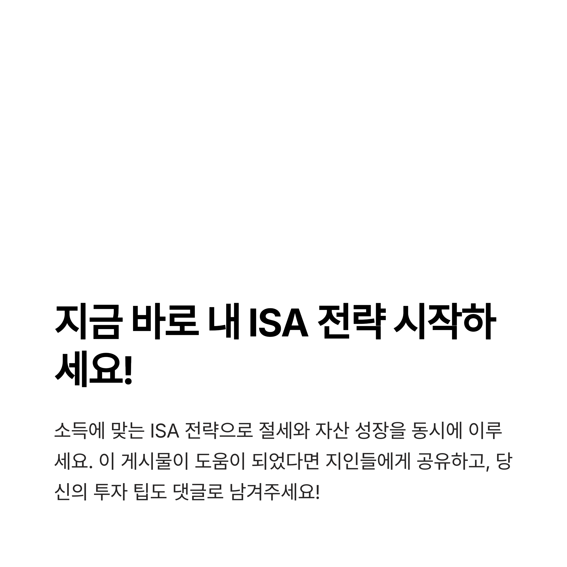 ISA는 결국 "내 소득 수준과 투자 성향에 맞는 방식"으로 설계되어야 합니다.