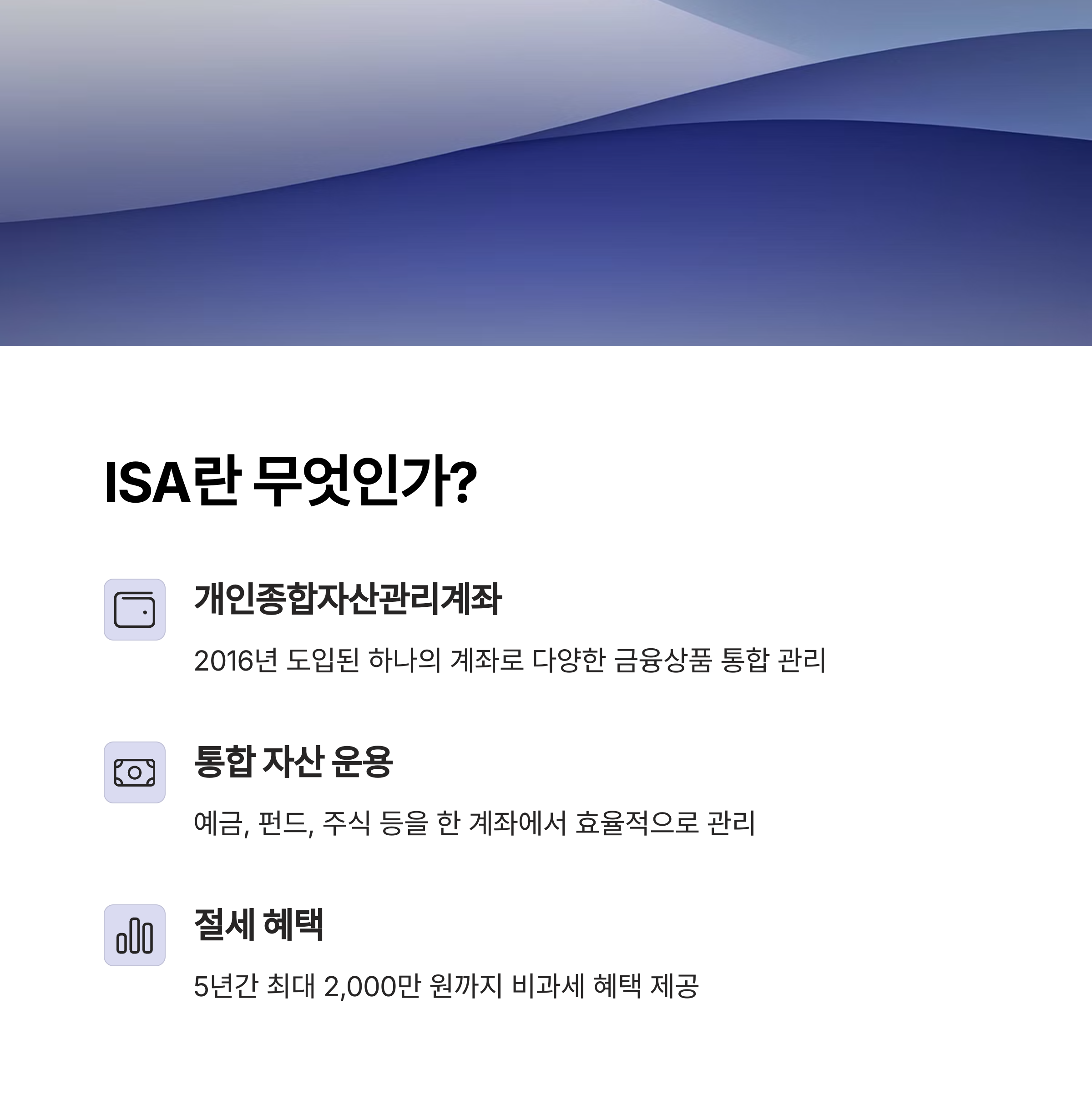 ISA는 "개인종합자산관리계좌"의 줄임말로 하나의 계좌에서 다양한 금융상품을 통합해 운용할 수 있는 절세형 재테크 도구입니다.