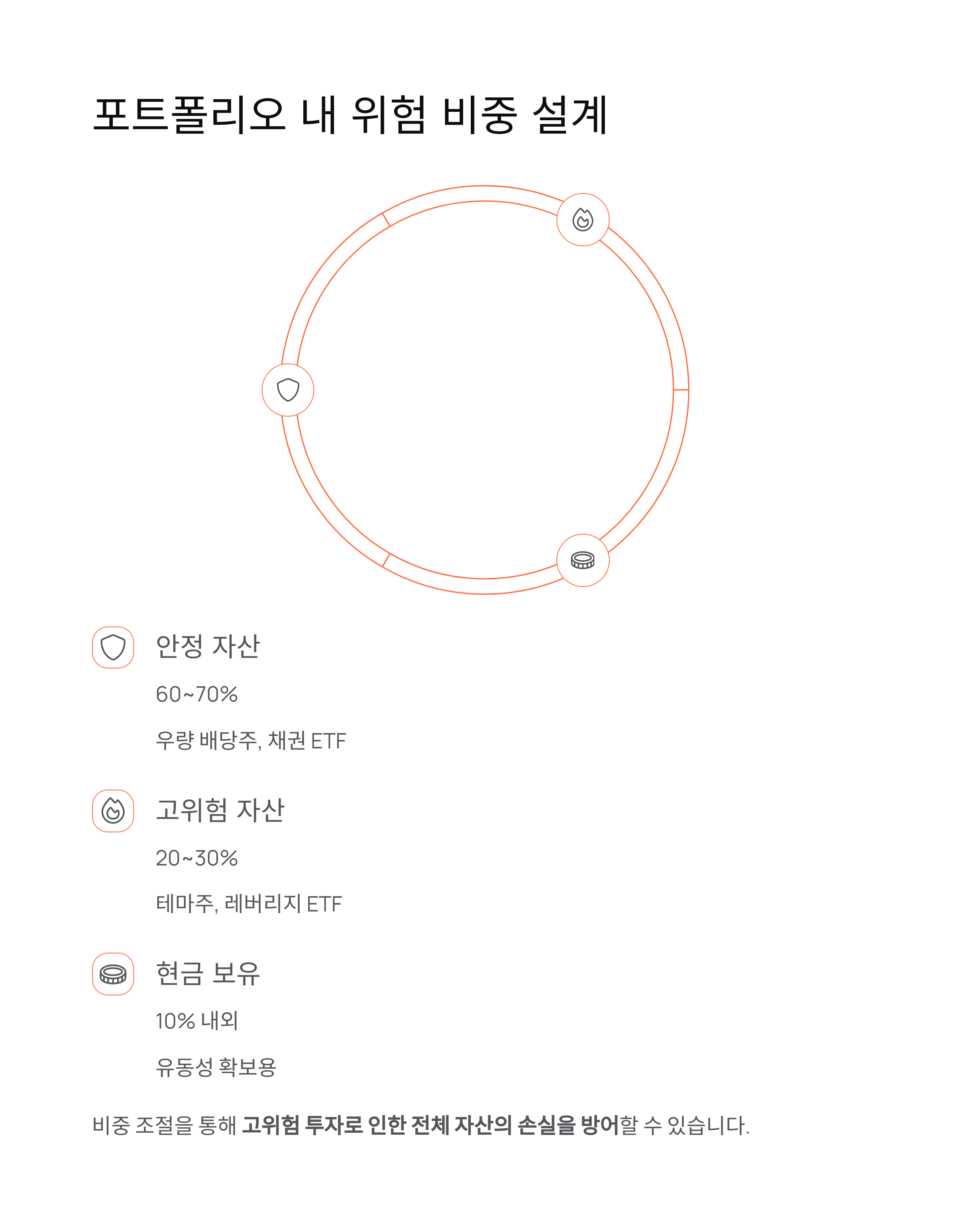 | 고위험 자산 | 20~30% | 테마주, 레버리지 ETF 등 |