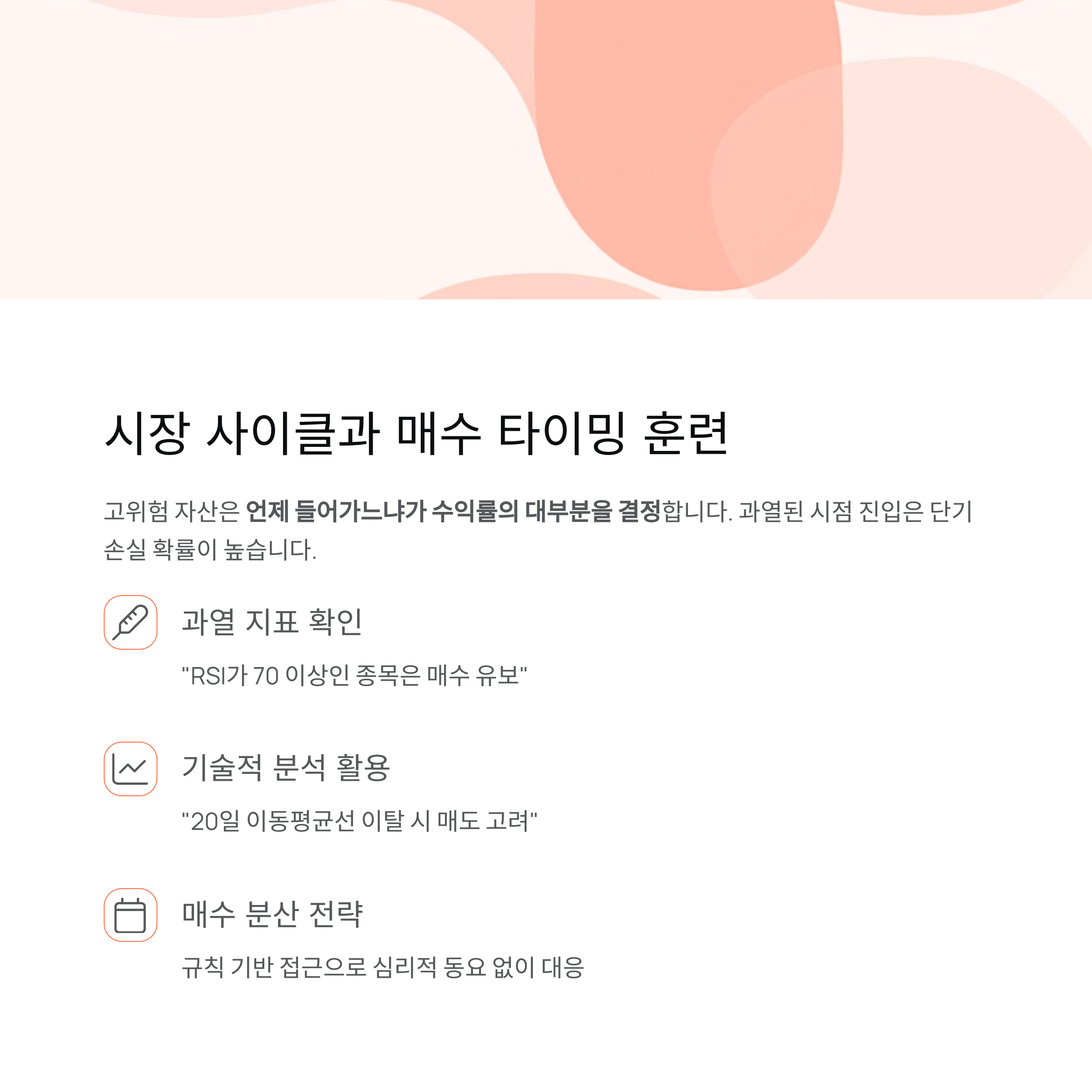 매수 타이밍을 분산시키는 연습이 중요합니다.