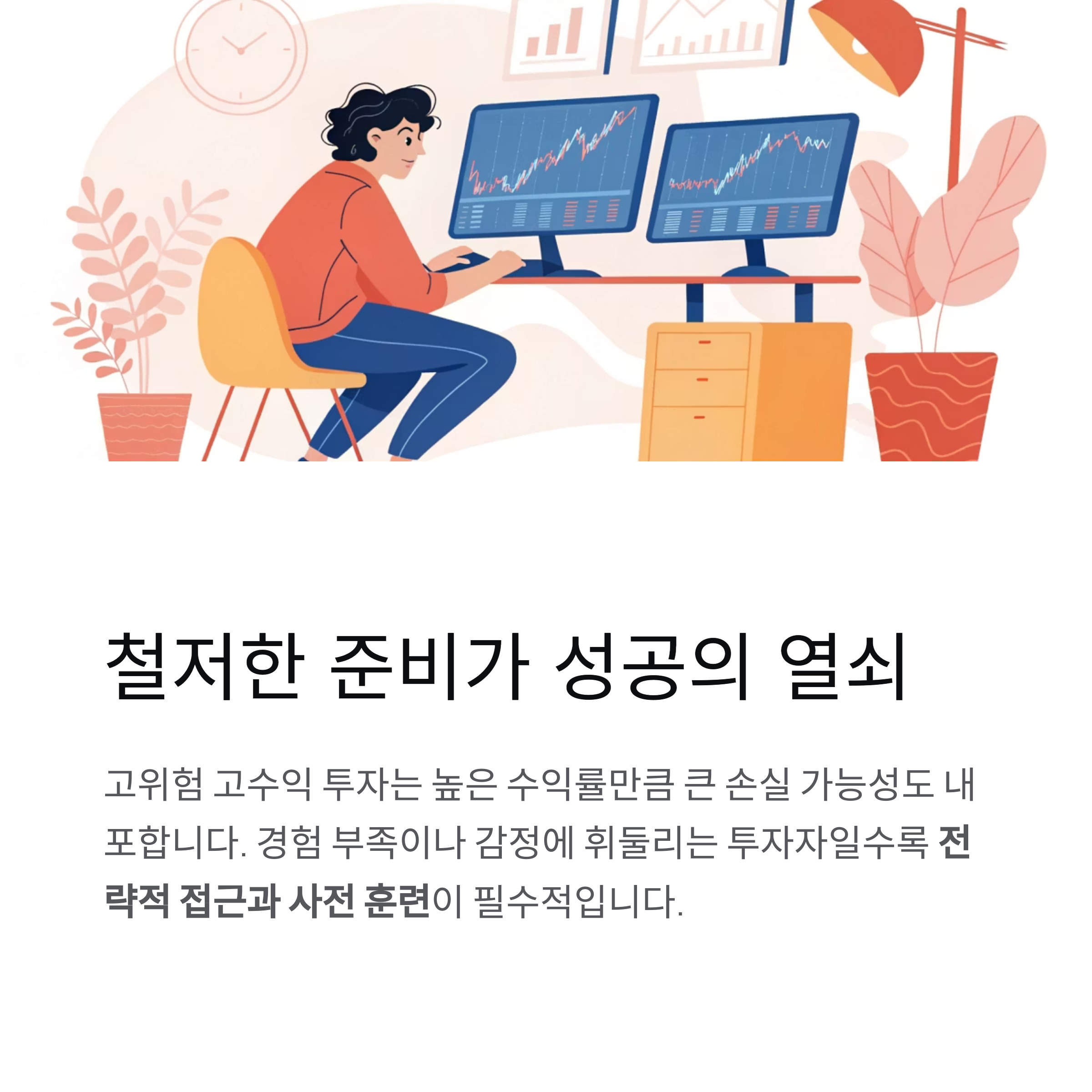큰 손실 가능성도 내포하고 있어 철저한 준비 없이는 실패할 확률이 큽니다.