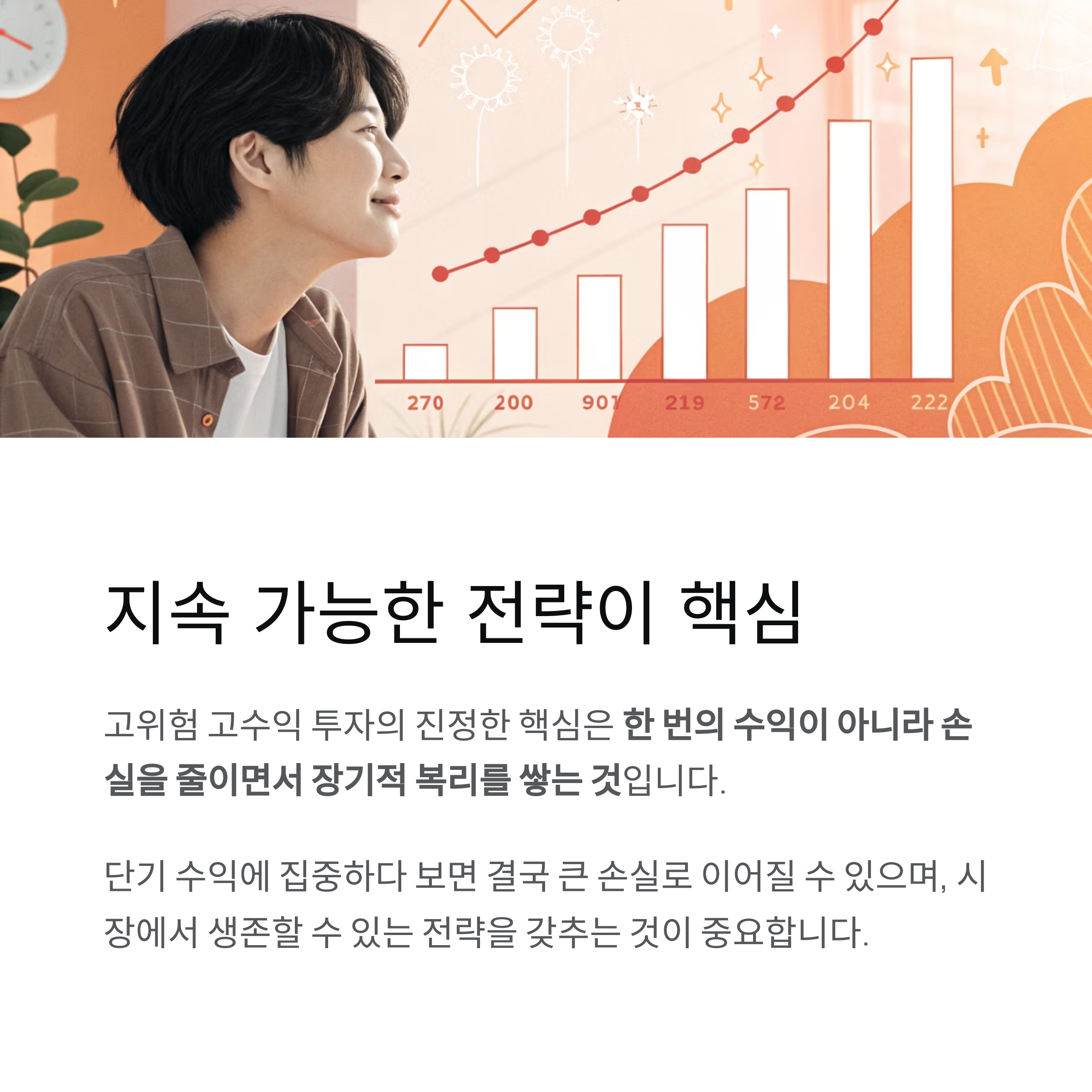 한 번의 수익이 아니라 손실을 줄이면서 장기적 복리를 쌓는 것입니다.