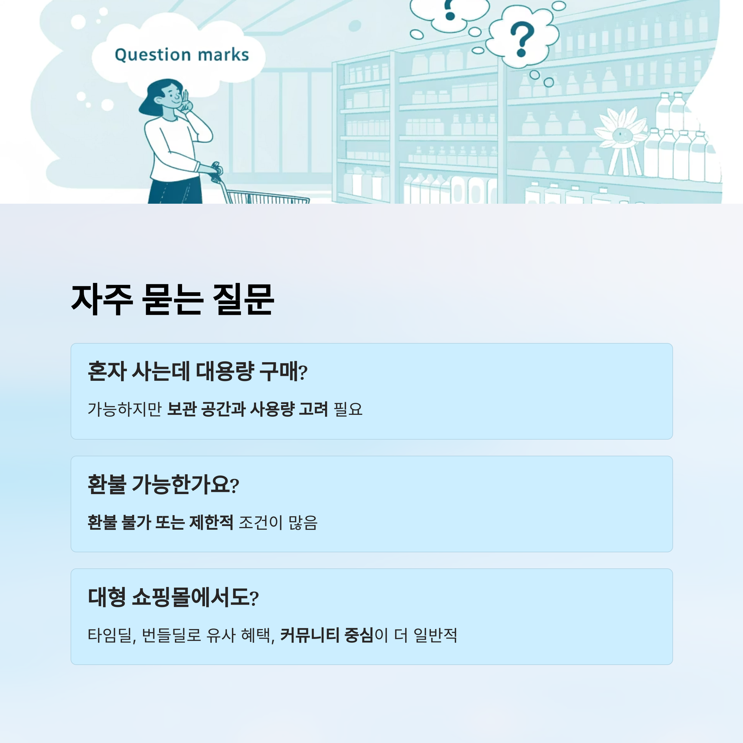 공동구매는 단순한 '할인 구매'가 아니라 소비 경험의 변형입니다. 하지만 꼼꼼한 확인 없이 참여할 경우 낭패를 볼 수 있다는 점도 함께 기억해야 합니다.