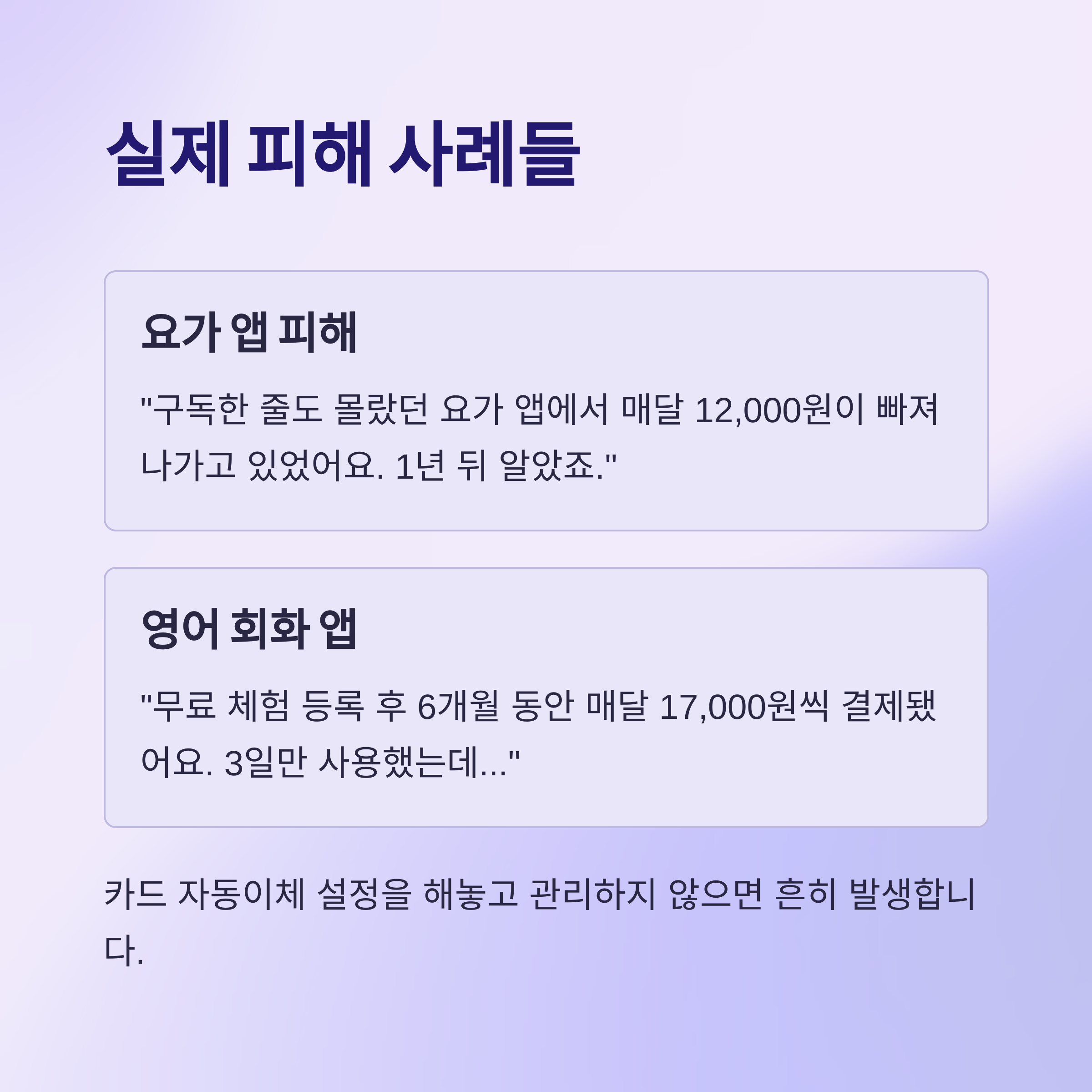 "구독한 줄도 몰랐던 요가 앱에서 매달 12,000원이 빠져나가고 있었어요.