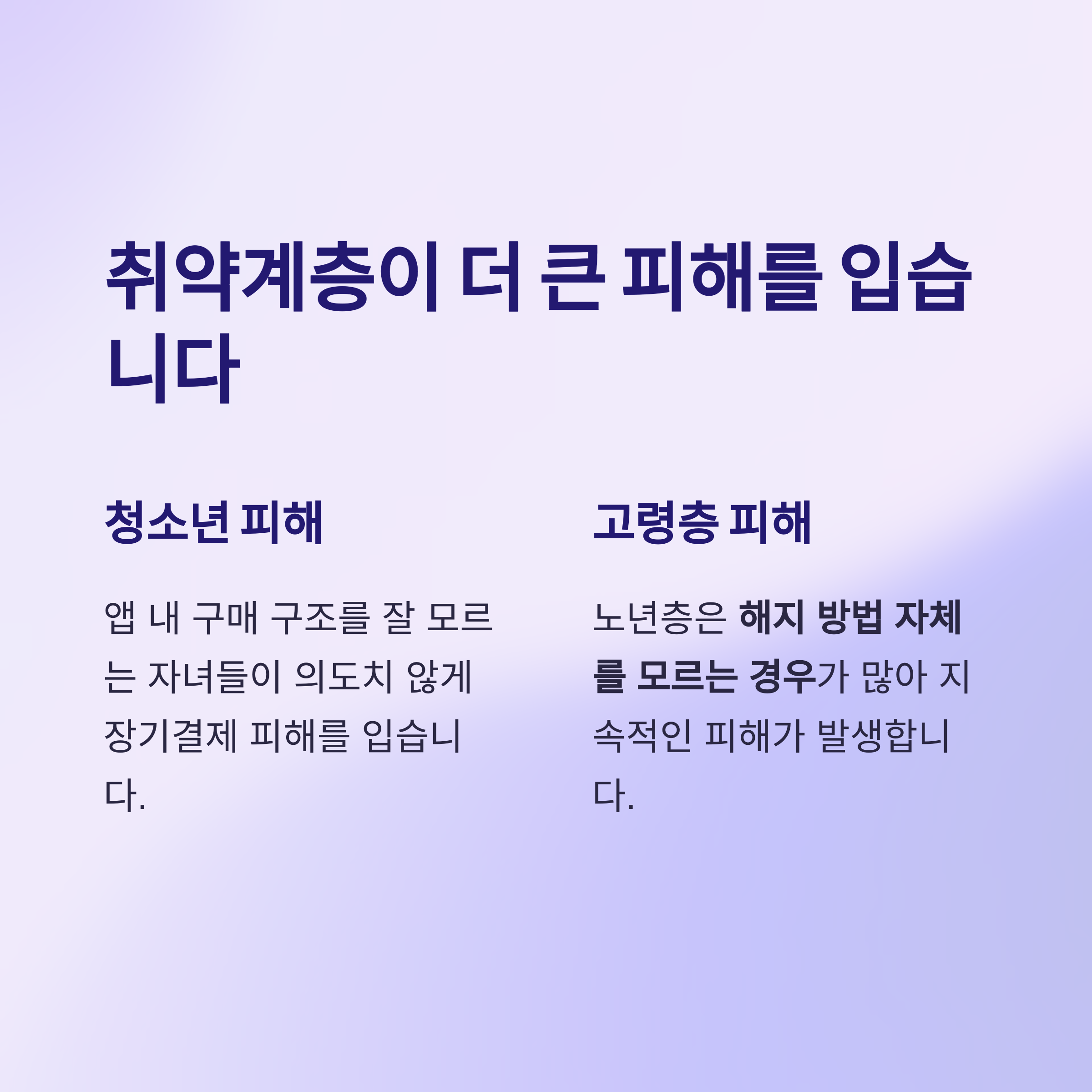 자녀나 고령층에서 의도치 않게 장기결제 피해가 발생하기 쉽습니다.