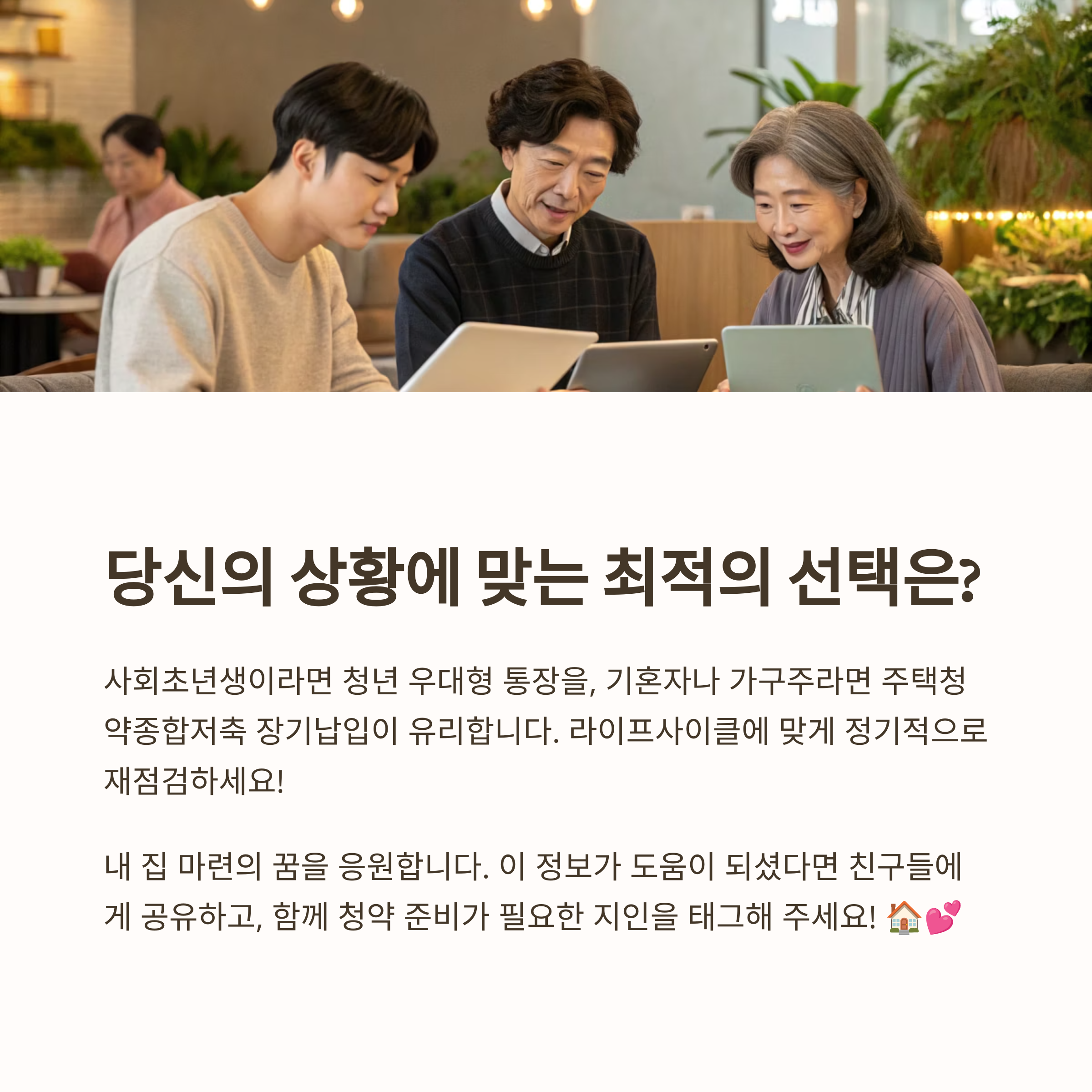 직장인은 주택청약종합저축을, 청년은 우대형 통장으로 이자 + 절세를 노리세요.