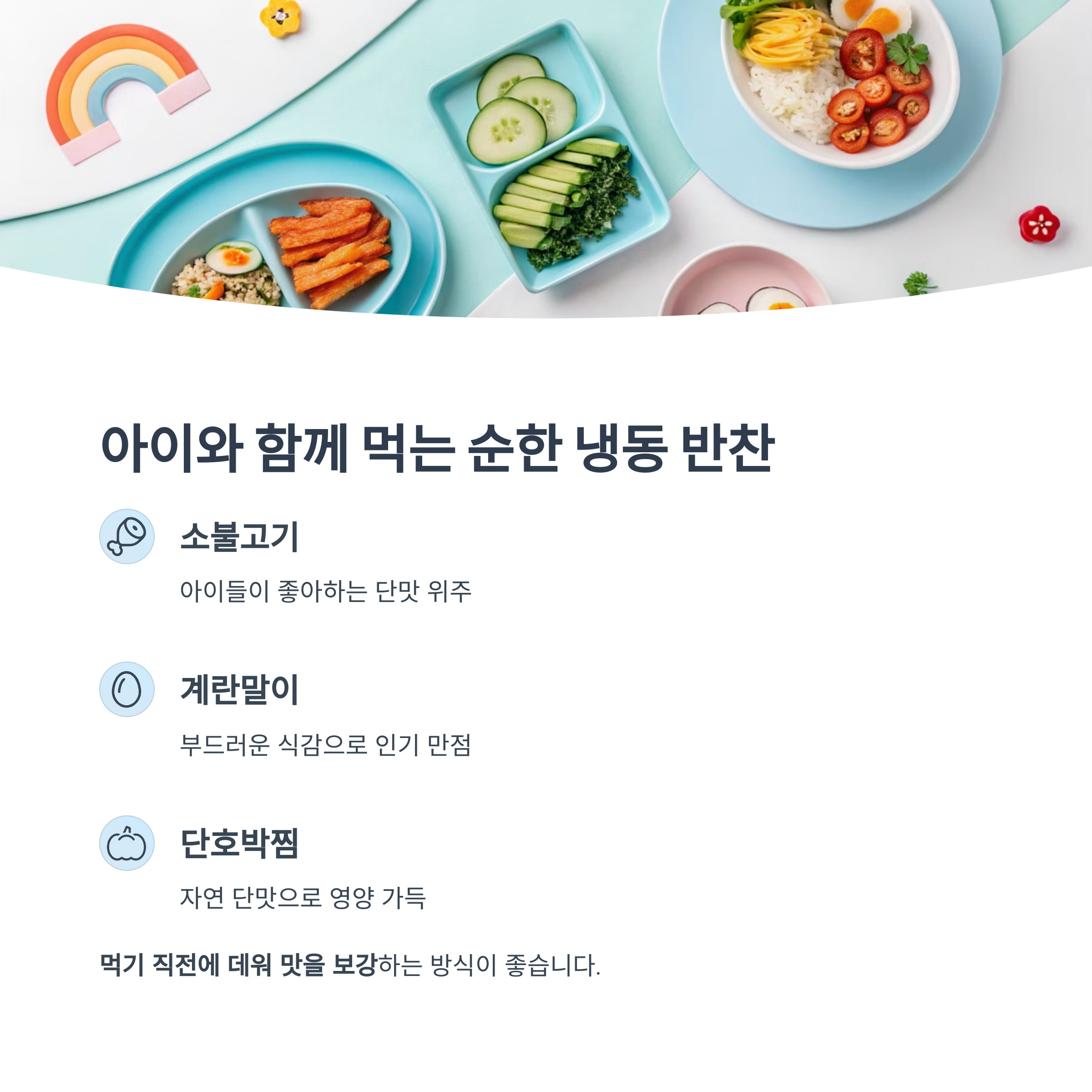 아이와 함께 먹을 수 있는 순한 냉동 반찬