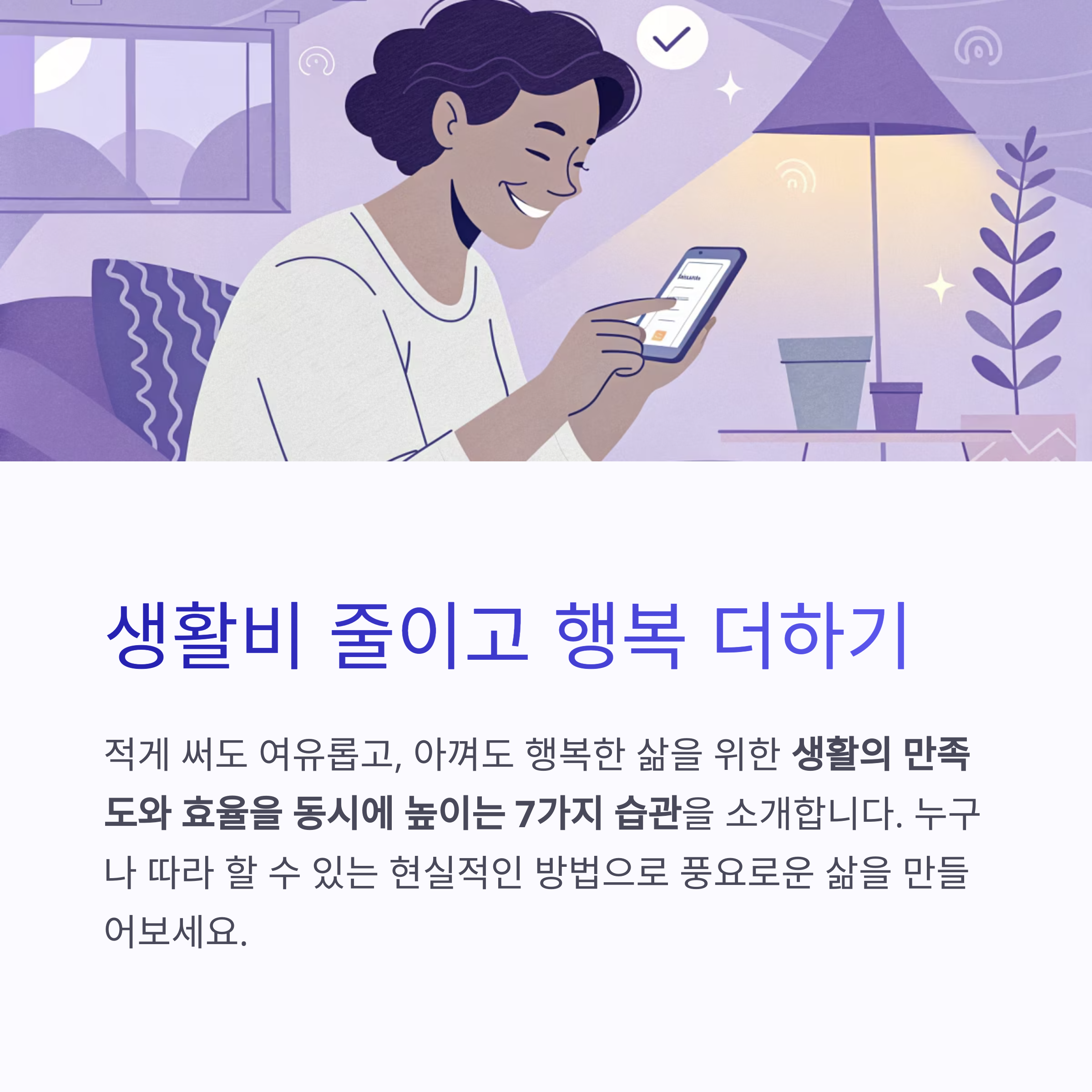 적게 써도 여유롭고, 아껴도 행복한 삶을 꿈꾸는 분들을 위한 실천 가이드입니다. 단순한 절약이 아닌, 생활의 만족도와 효율을 동시에 높이는 7가지 습관을 소개합니다. 누구나 따라 할 수 있는 현실적인 방법으로, 생활비는 줄이고 풍요는 더해보세요.