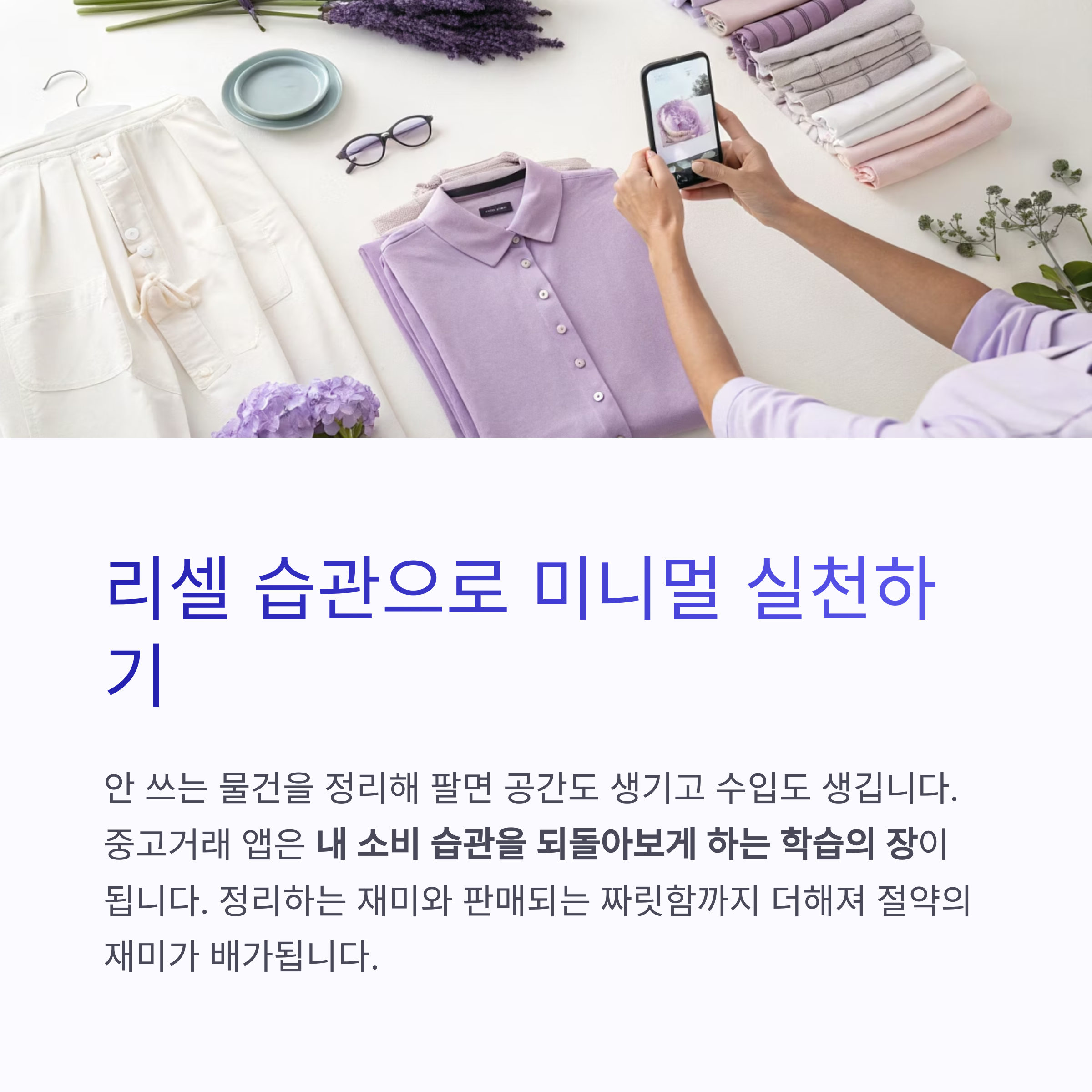 안 쓰는 물건을 정리해 팔면 공간도 생기고 수입도 생깁니다. 중고거래 앱은 단순히 물건을 파는 공간이 아닌, 내 소비 습관을 되돌아보게 하는 학습의 장이 됩니다. 팔 물건이 없다고 생각하더라도, 옷장이나 창고를 열어보면 꼭 한두 개는 나옵니다. 정리하는 재미, 판매되는 짜릿함까지 더해져 절약의 재미가 배가됩니다.