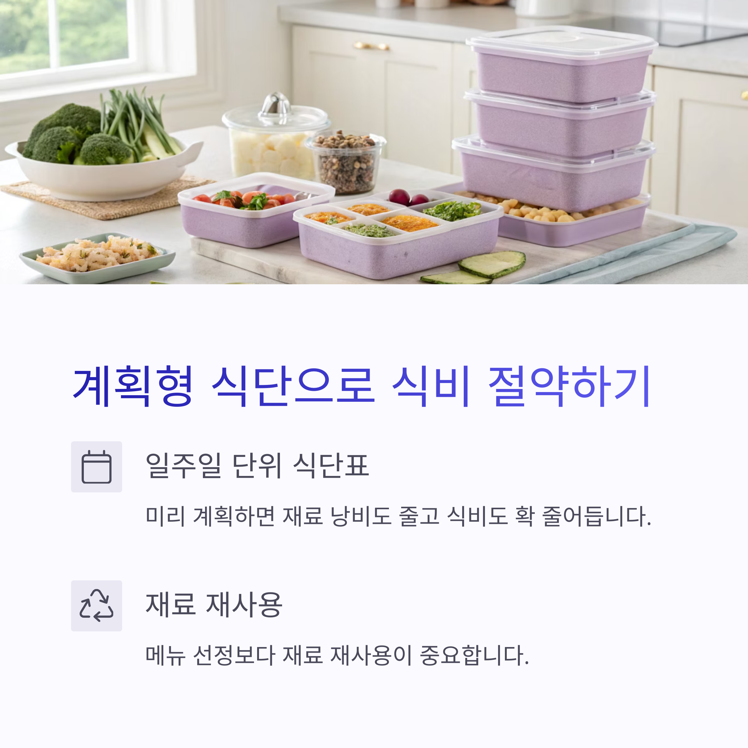 핵심: 식사는 ‘메뉴 선정’보다 ‘재료 재사용’이 중요합니다.