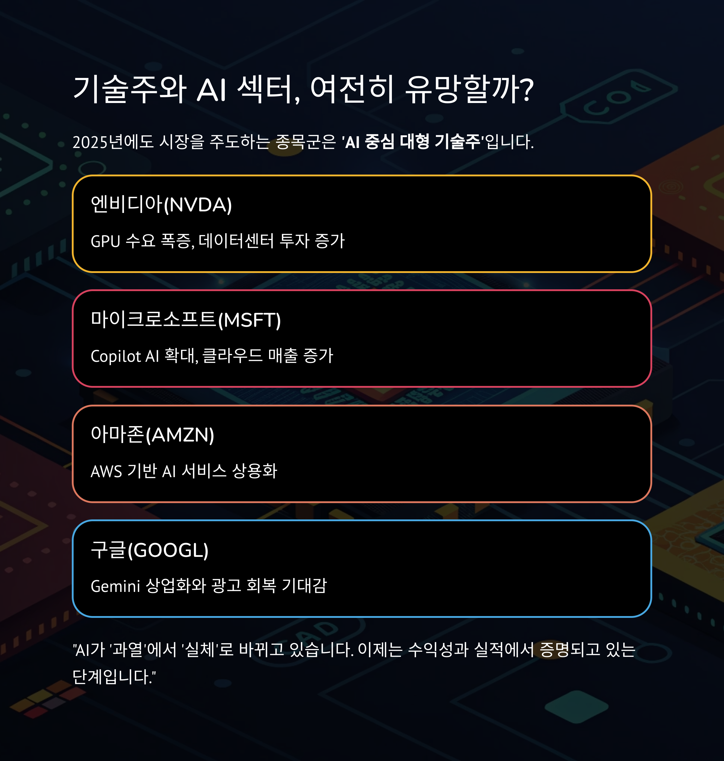2025년에도 시장을 주도하는 종목군은 'AI 중심 대형 기술주'입니다.