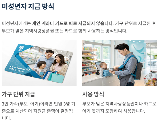 미성년자에게는 개인 계좌나 카드로 따로 지급되지 않으며,