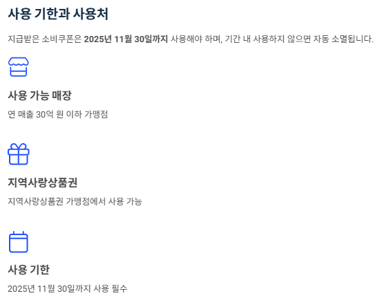 지급받은 소비쿠폰은 2025년 11월 30일까지 사용해야 하며,