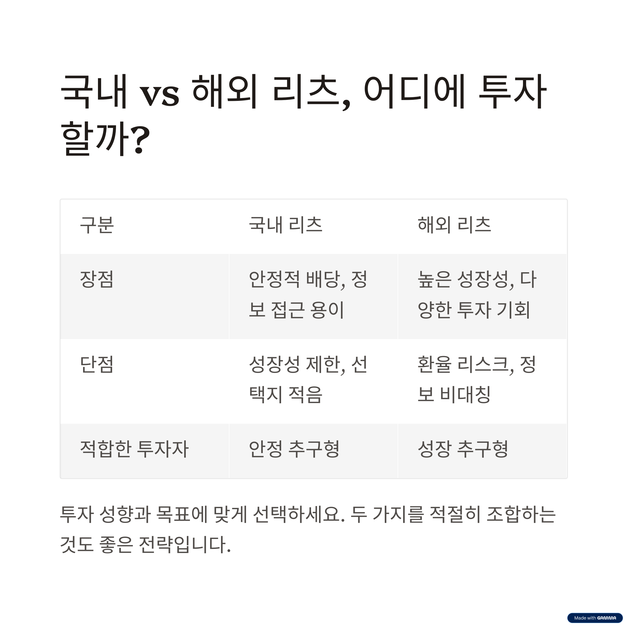 국내 vs 해외 리츠 비교