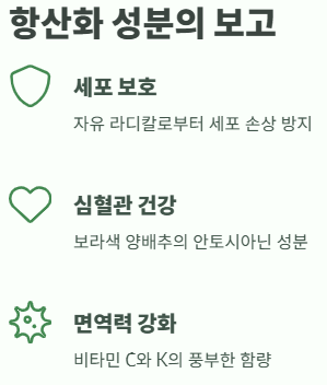 양배추는 비타민 C, K, 폴리페놀 등의 항산화 성분이 풍부해