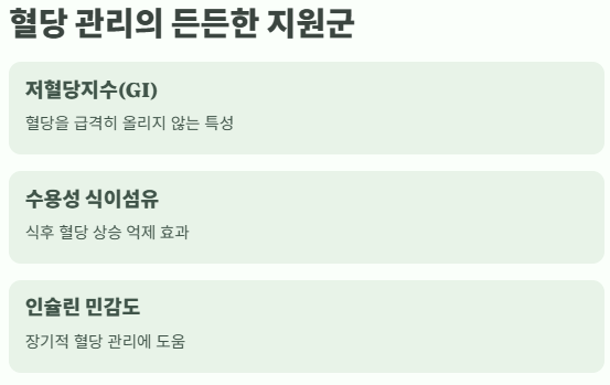 특히 수용성 식이섬유가 풍부하여 식사 후 혈당 상승을 억제하며,