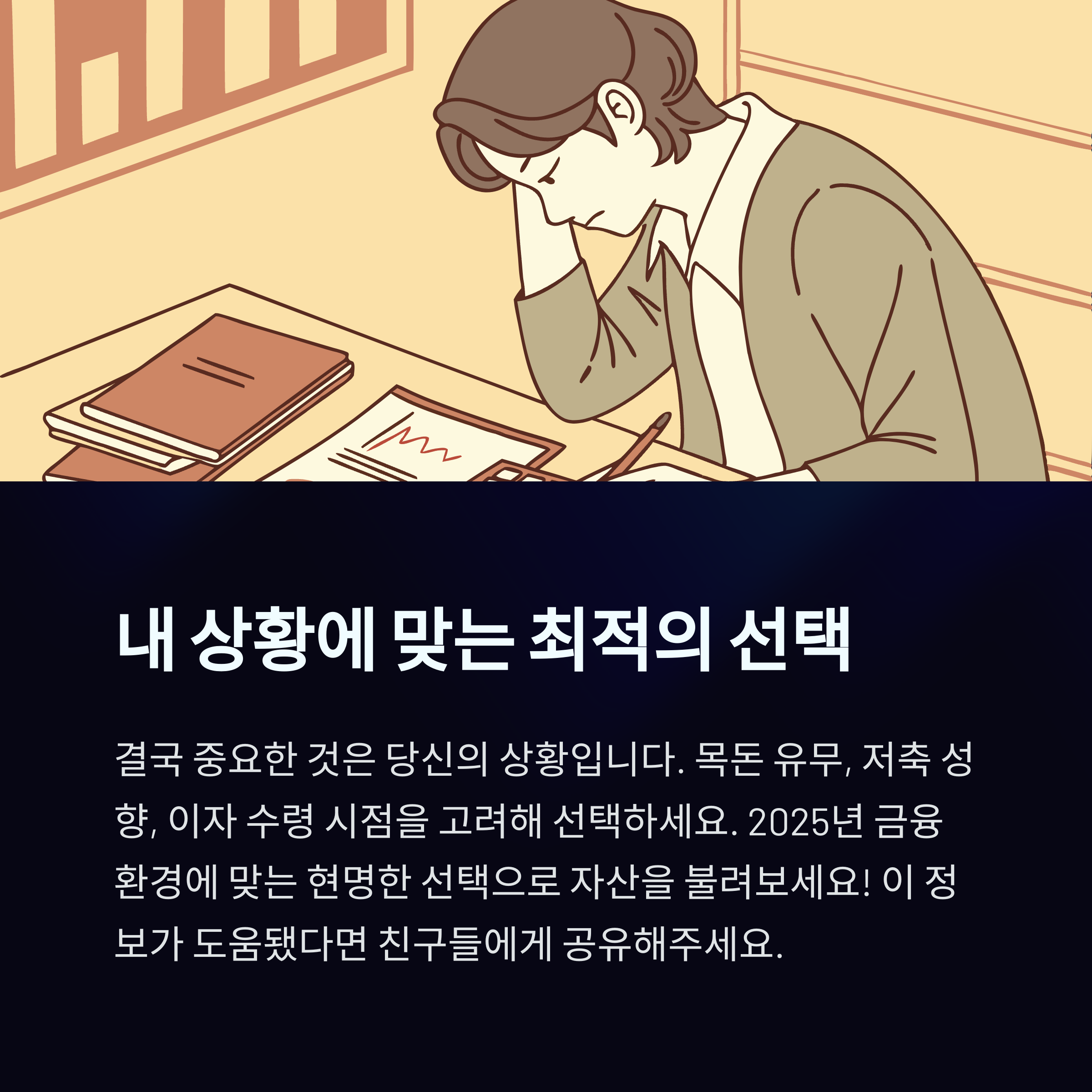 무조건 예금이 낫다, 적금이 낫다라고 말할 수 없습니다. 나의 자금 흐름과 목적, 성향에 따라 가장 유리한 선택이 달라집니다.