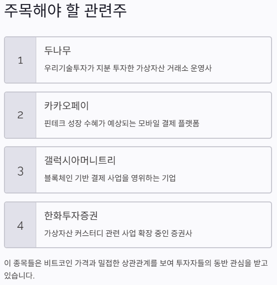 이 종목들 또한 비트코인 가격과 밀접한 상관관계를 보여