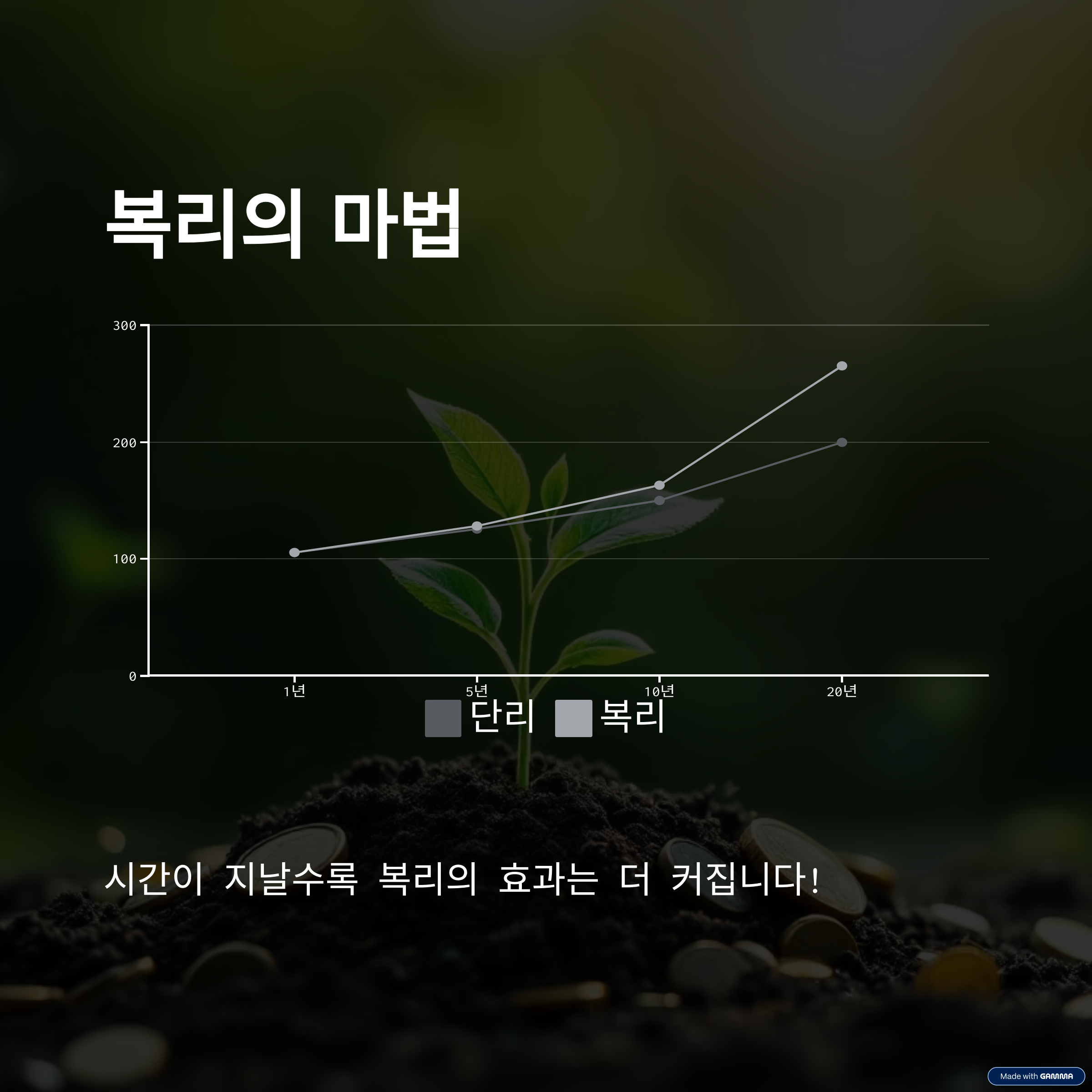 단리보다 훨씬 높은 수익률을 만들 수 있어, 장기 저축 계획에 복리를 적극 활용하세요 📈