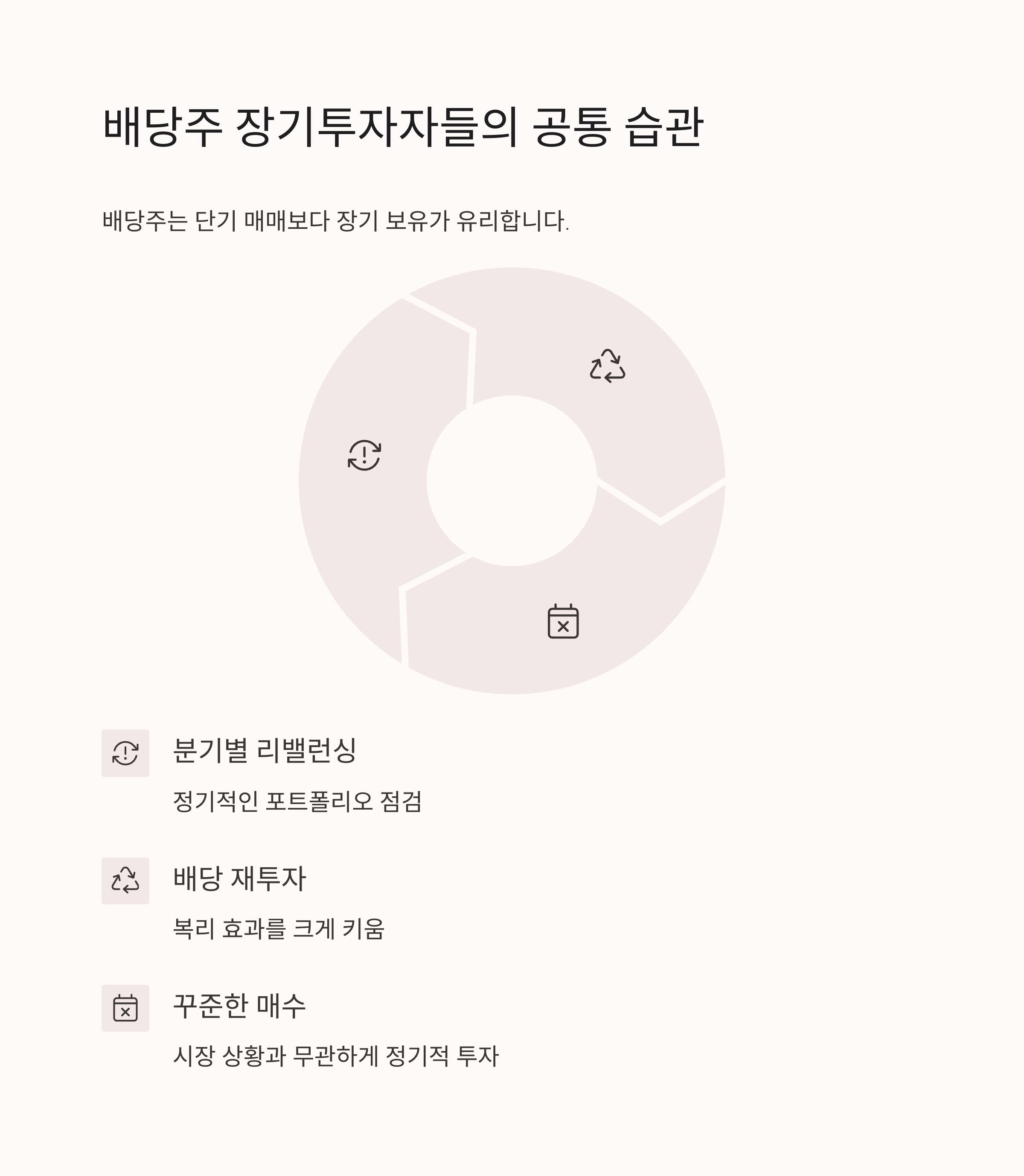 성공한 배당주 투자자들의 공통점은 분기별 리밸런싱, 배당 재투자, 꾸준한 매수입니다.