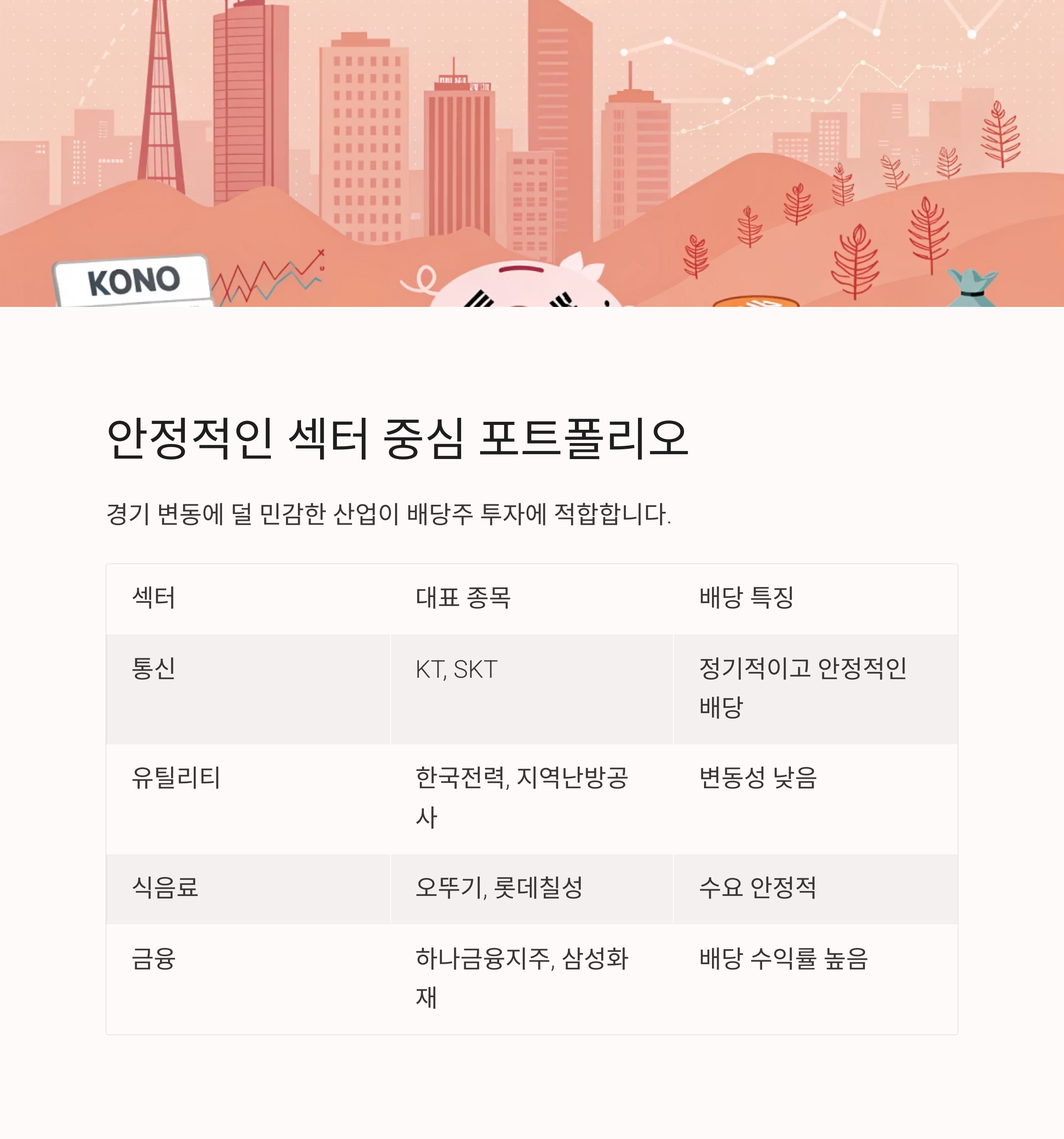 섹터 대표 종목 배당 특징