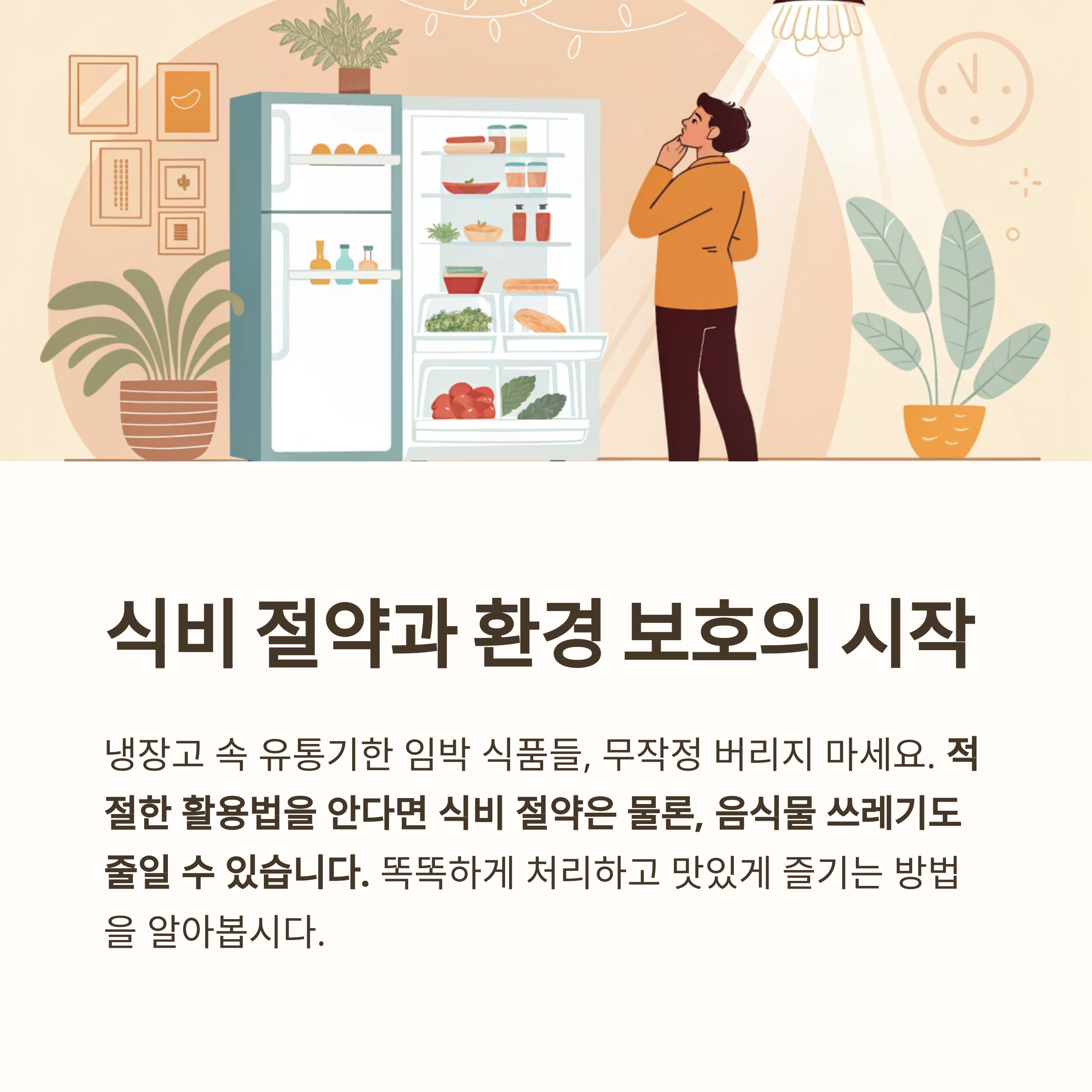 냉장고를 열어보면 유통기한이 임박한 식품들이 눈에 띌 때가 많습니다. 무작정 버리기보다는 적절한 활용법을 안다면 식비 절약은 물론, 음식물 쓰레기도 줄일 수 있습니다. 이번 글에서는 유통기한 임박 식품을 똑똑하게 처리하고, 맛있게 즐기는 방법들을 소개합니다.