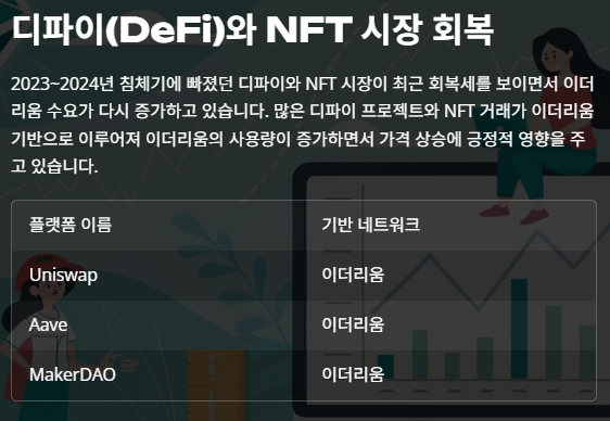많은 디파이 프로젝트와 NFT 거래가 이더리움 기반으로 이루어지고 있어