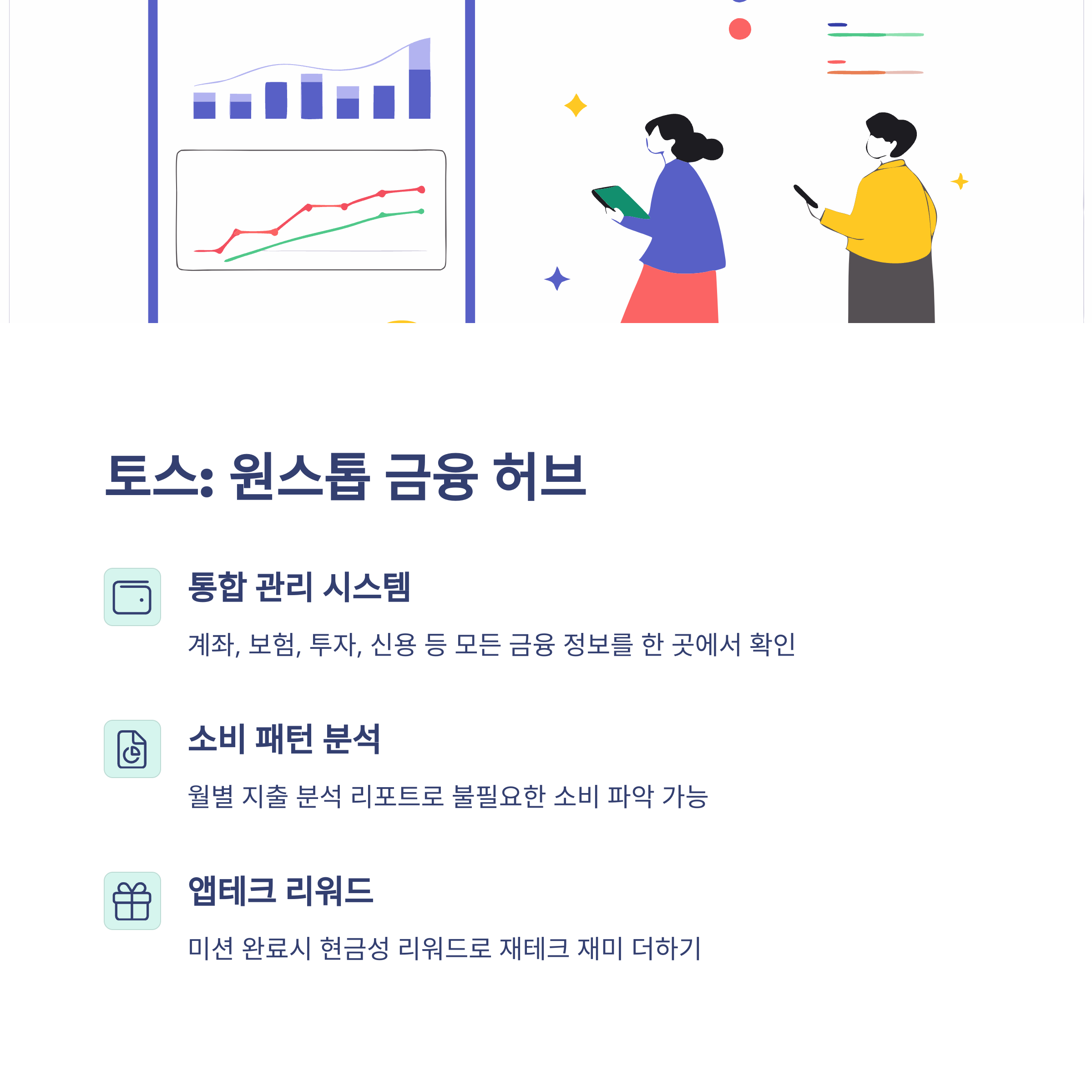 - 토스: 자산 전체 흐름 실시간 확인 가능, 경고 기능이 유용