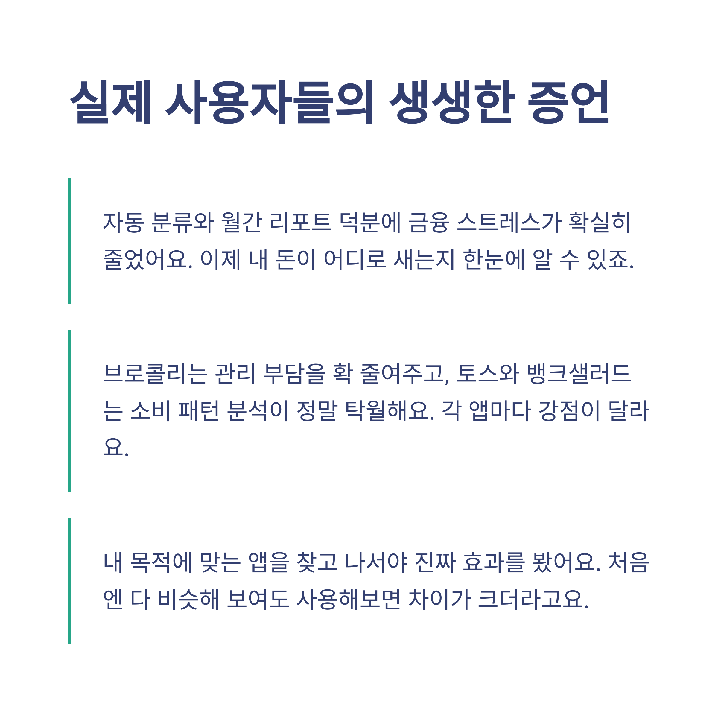 - 브로콜리: 자동화 덕분에 자산 흐름을 안 봐도 정리됨