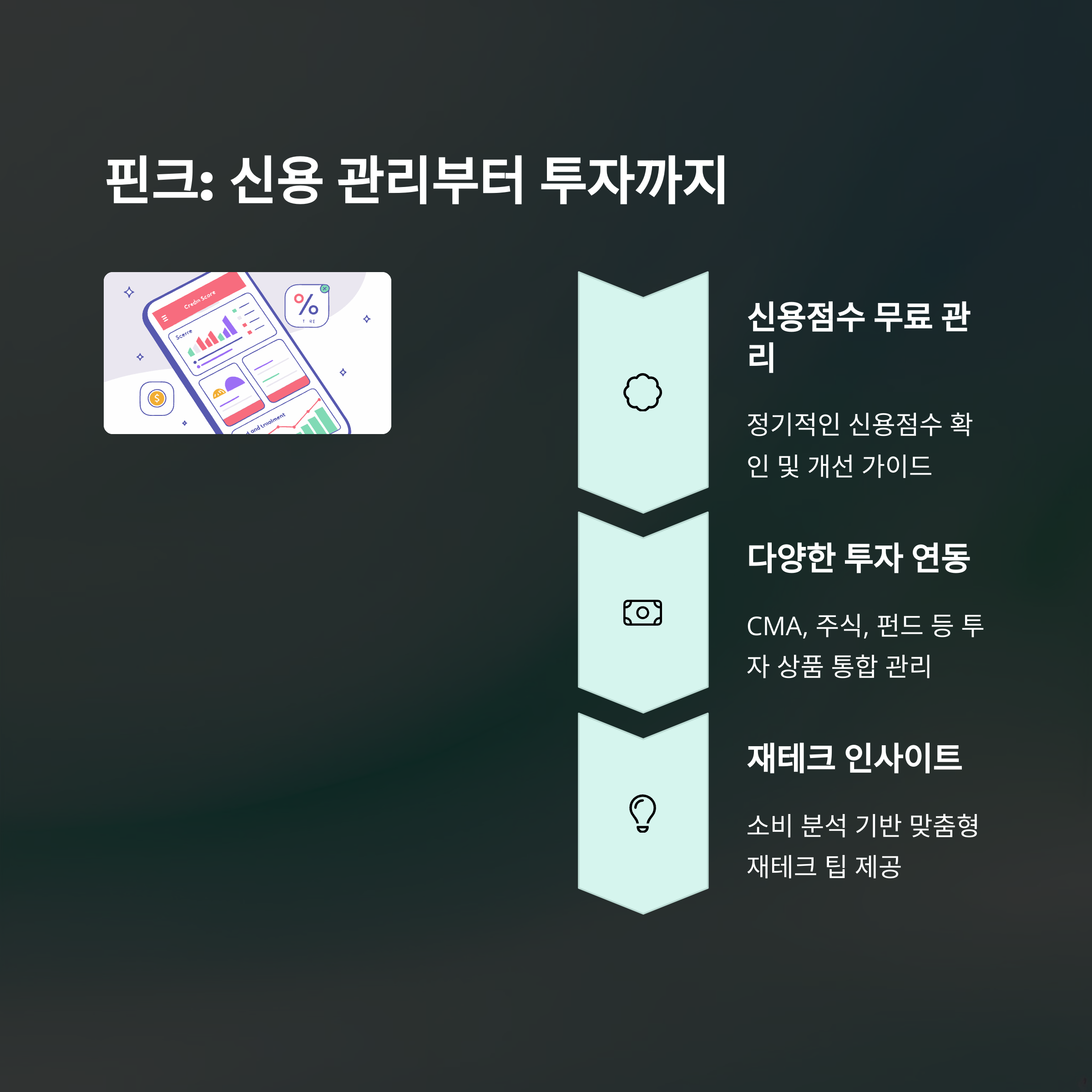 핀크는 신용점수 관리를 중심으로 다양한 기능을 제공합니다