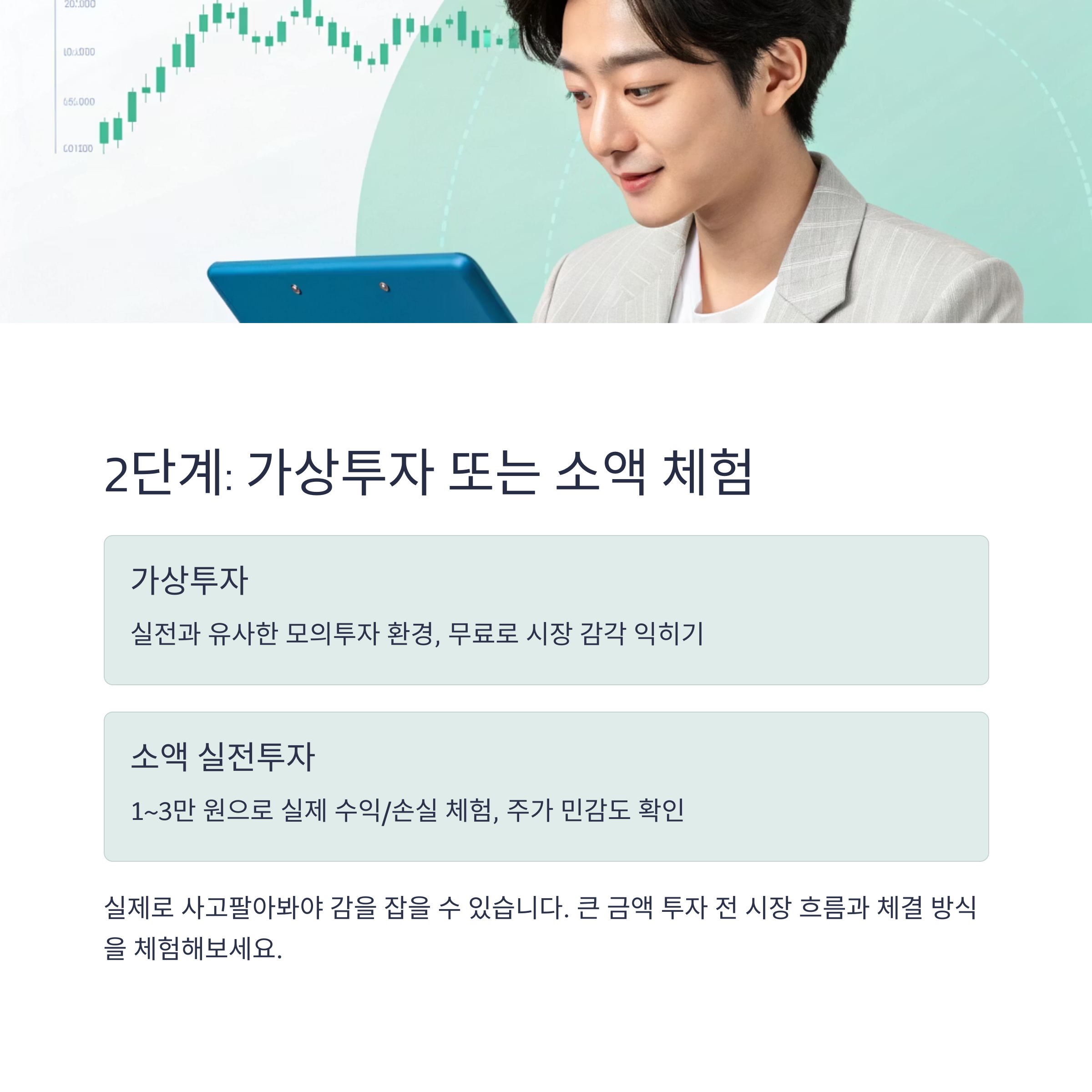 아래는 실제 초보자에게 권장되는 체험 투자 방식입니다.