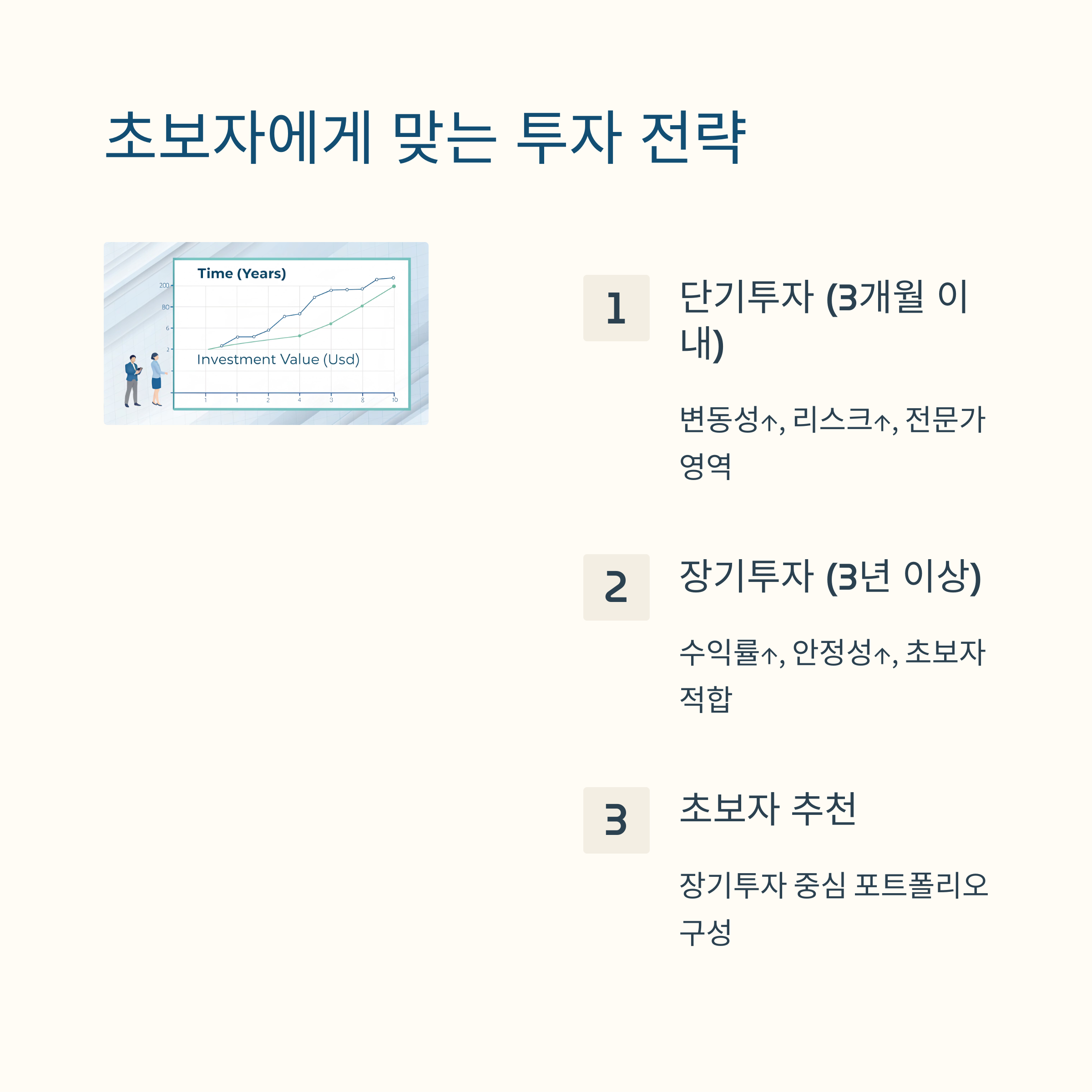 장기 투자는 복리 효과를 기대할 수 있어 초보자에게 유리할 수 있습니다.
