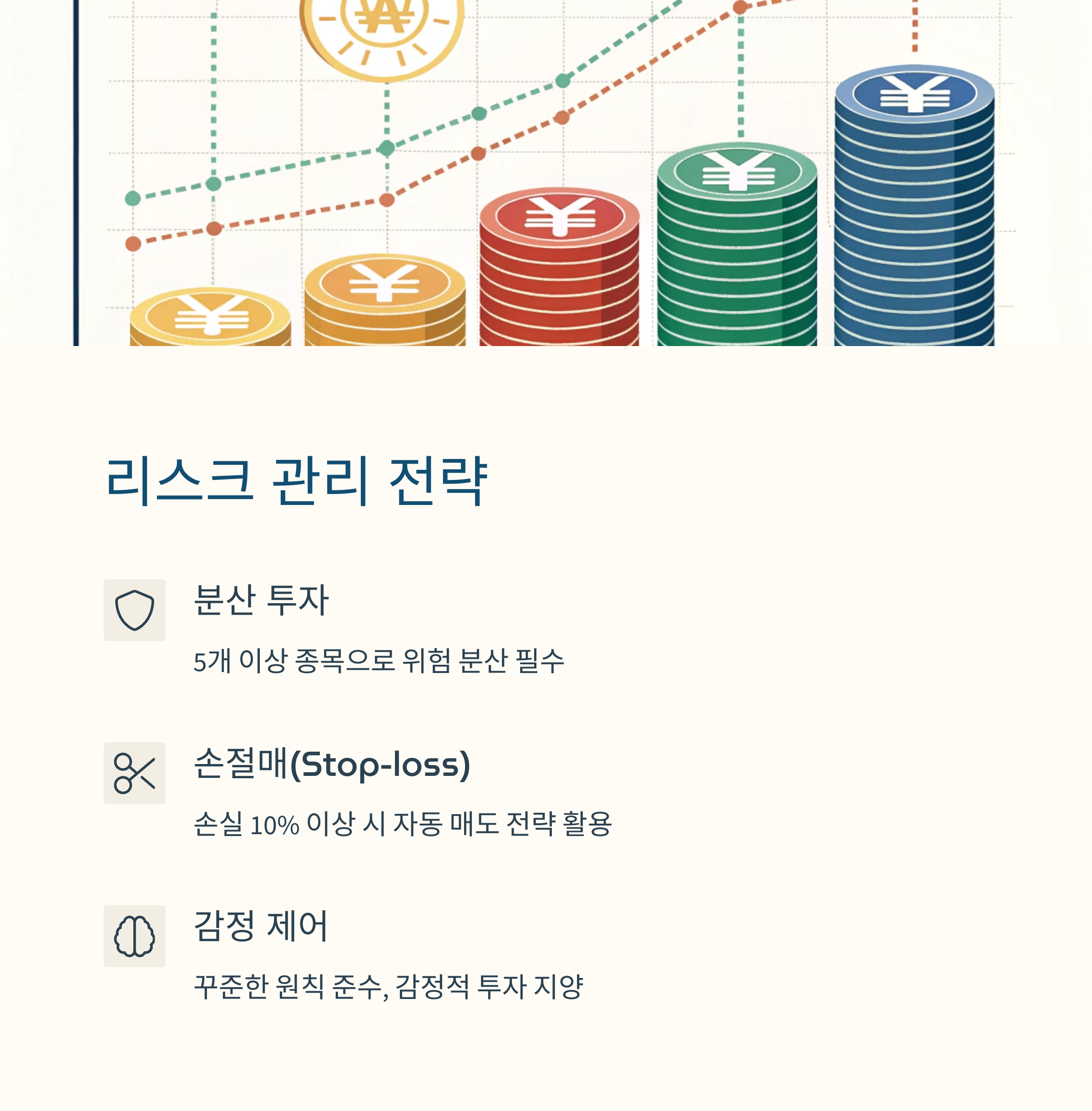 "손절매 기준을 정하고, 감정에 휘둘리지 않는 것이 필수"입니다.