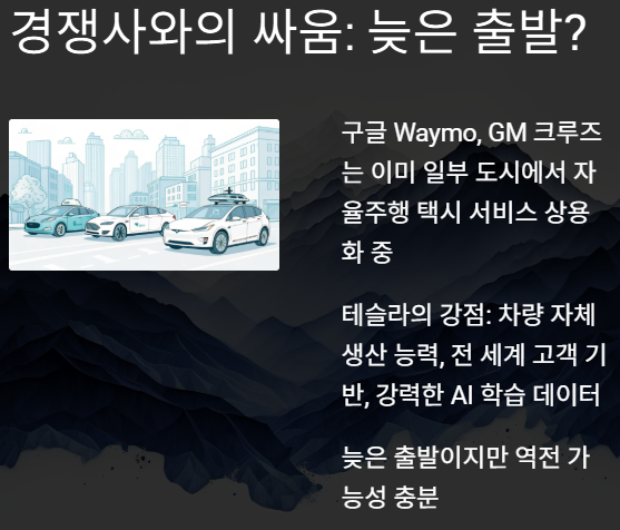 경쟁사와 비교: Waymo·크루즈에 비해 늦은 출발?