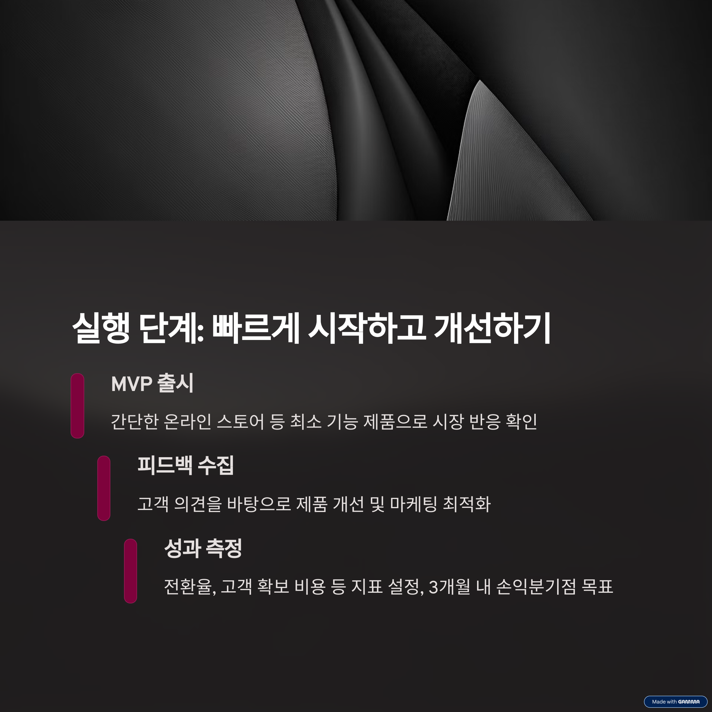 | 작지만 강한 시장 | 검색, 리뷰 기반 전략 | 빠른 실행과 반복 |