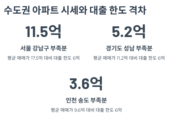 지역 평균 매매가 (억원) 2025년 주담대 한도 자금 부족분