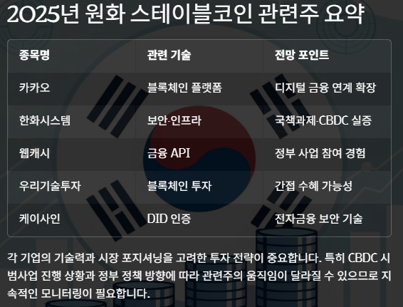 원화 스테이블코인 관련주의 향후 투자 포인트는?
