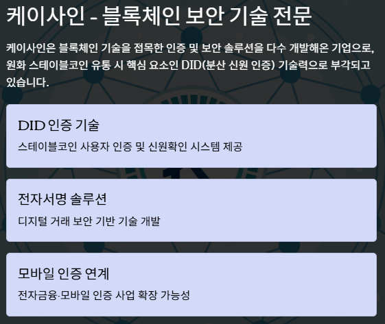 | 케이사인 | DID 인증 | 전자금융 보안 기술 |