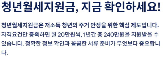 청년월세지원금은 저소득 청년의 주거 안정을 위한 핵심 제도입니다.