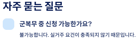 "현재 군복무 중인 청년도 신청할 수 있나요?"