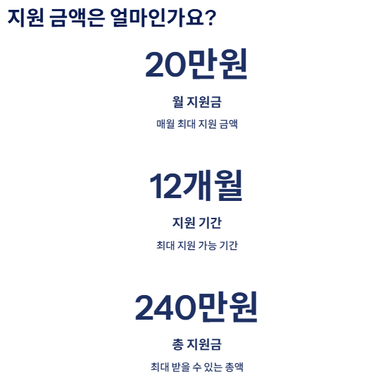자격요건만 충족하면 월 20만 원씩, 1년간 총 240만 원을 지원받을 수 있습니다.