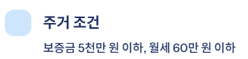 | 주거 형태 | 보증금 5천만 원 이하, 월세 60만 원 이하 주택 거주자 |