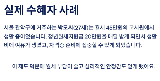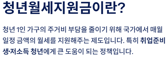 청년 1인 가구의 주거비 부담을 줄이기 위한 청년월세지원금은