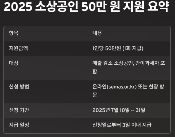 2025 소상공인 지원금 50만원 신청방법과 지급일 총정리
