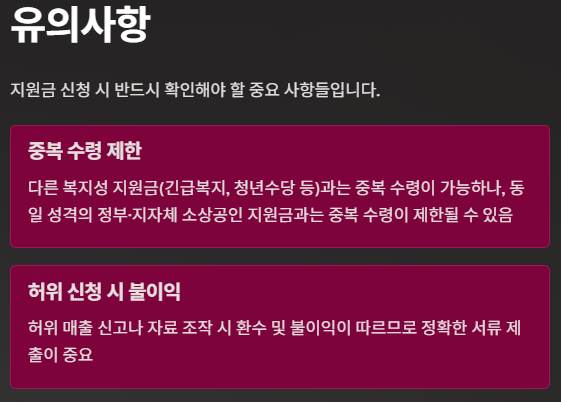 유의사항 – 중복 수령·허위 신청 시 환수 조치