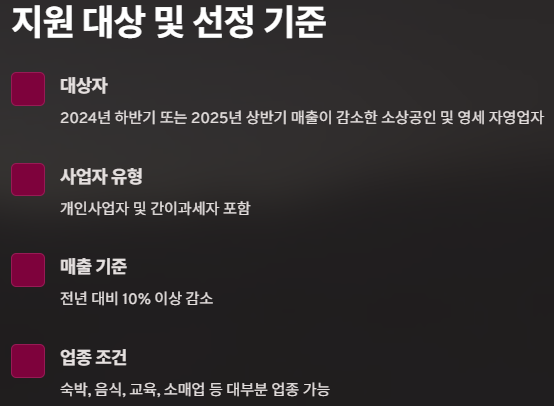 2024년 하반기 또는 2025년 상반기 매출이 감소한 소상공인 및 영세 자영업자입니다.