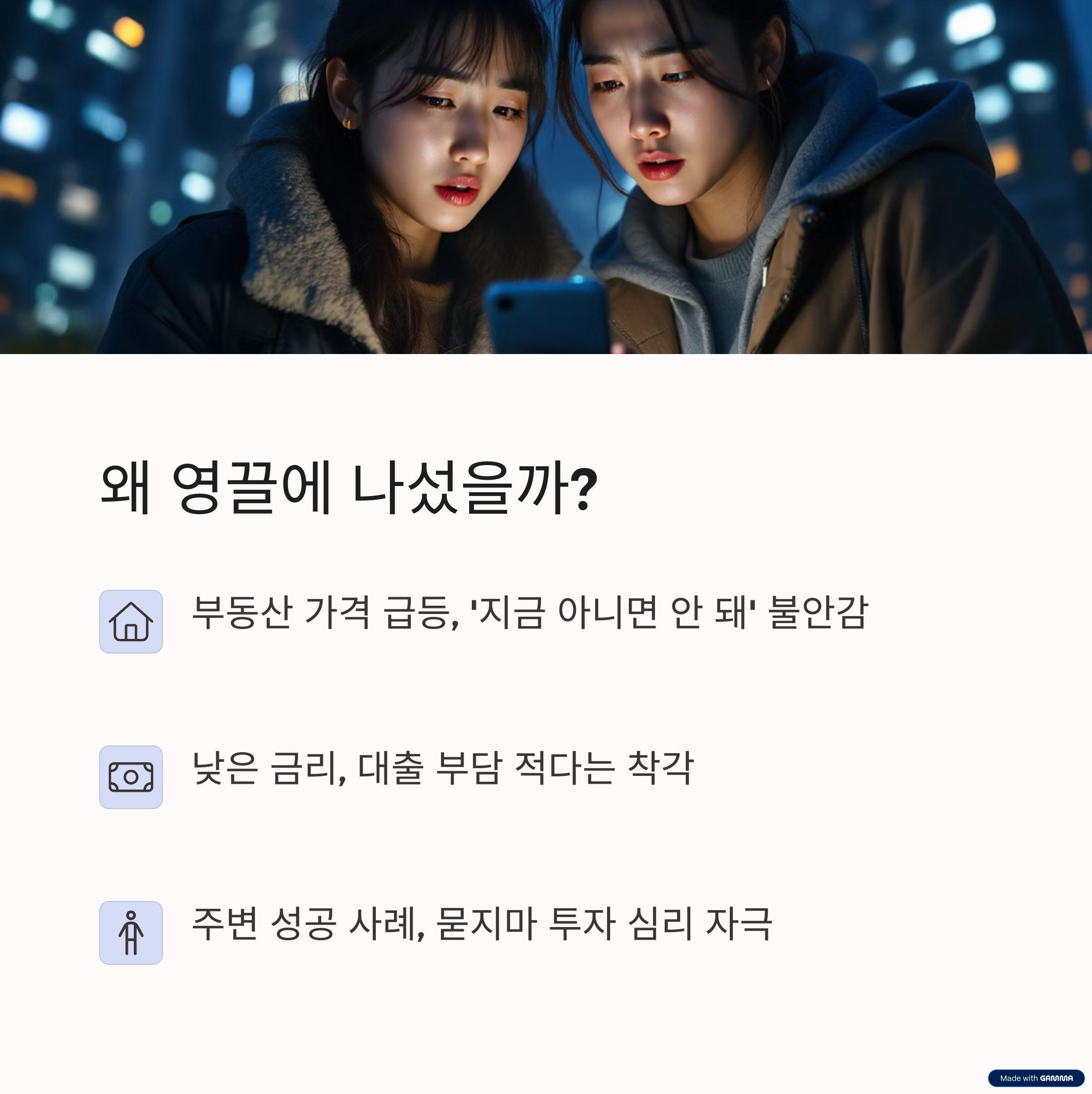 이 모든 배경이 2030에게 '영끌'이라는 선택을 강요했습니다.