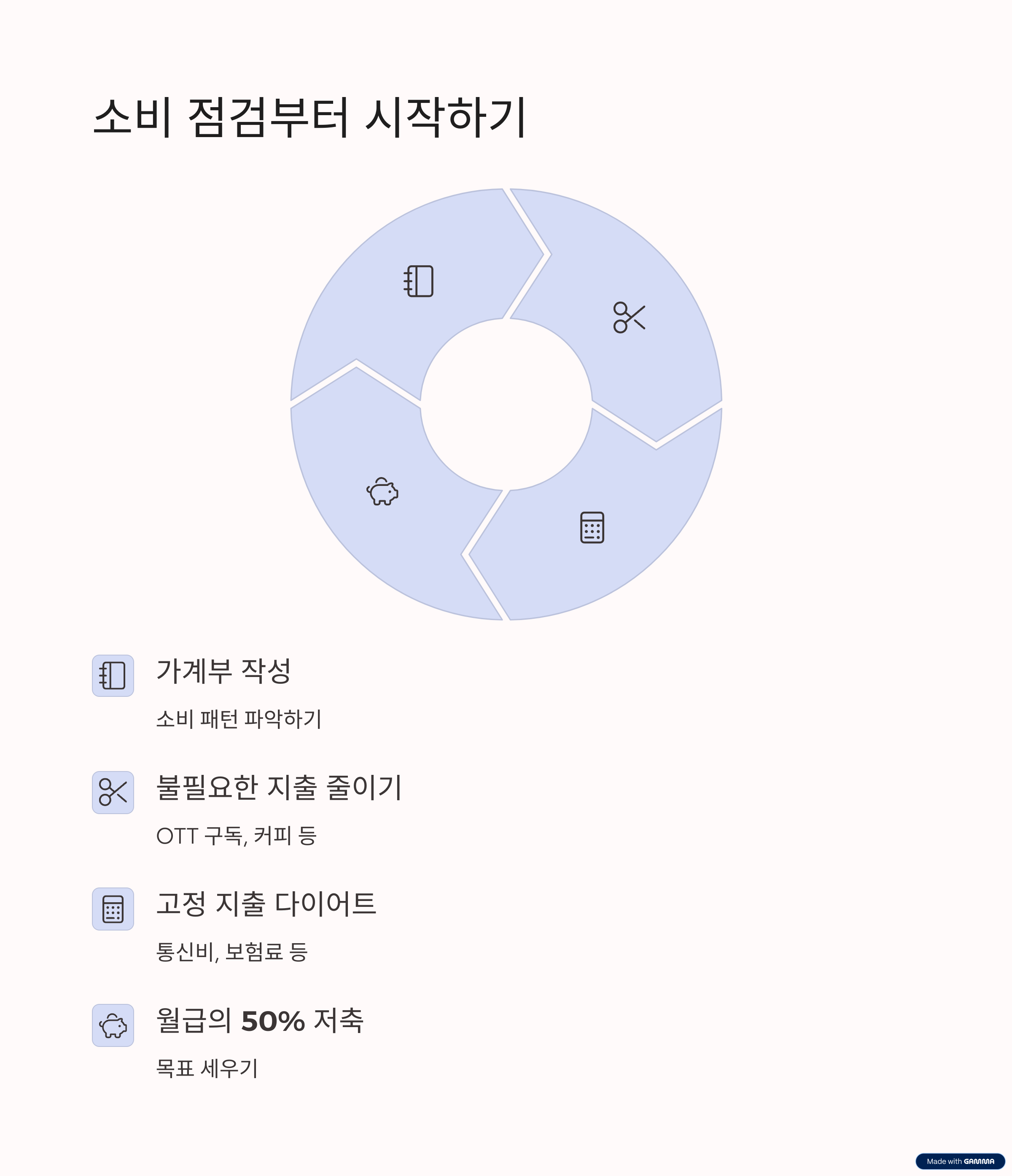 지출 내역을 분석하고 필요 없는 소비를 줄이는 것만으로도 매달 10~20만 원을 절약할 수 있어요.